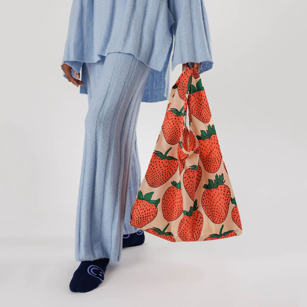 Standard Bag by Baggu. Baggu's best selling reusable bag isn't just for the grocery store, it goes everywhere and hauls almost anything. Carries 2-3 plastic grocery bags worth of stuff comfortably in hand or over your shoulder.