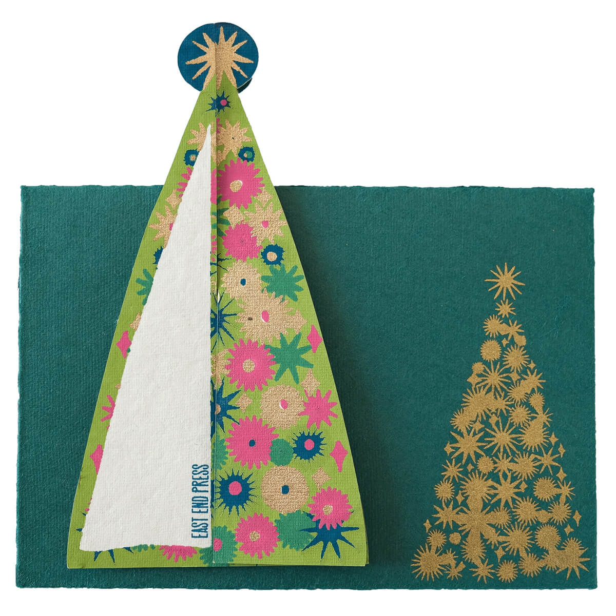 Star Tree Greetings Card by East End Press. This bright and merry pop-up tree is a festive way to wish loved ones a Happy Christmas this holiday season.