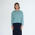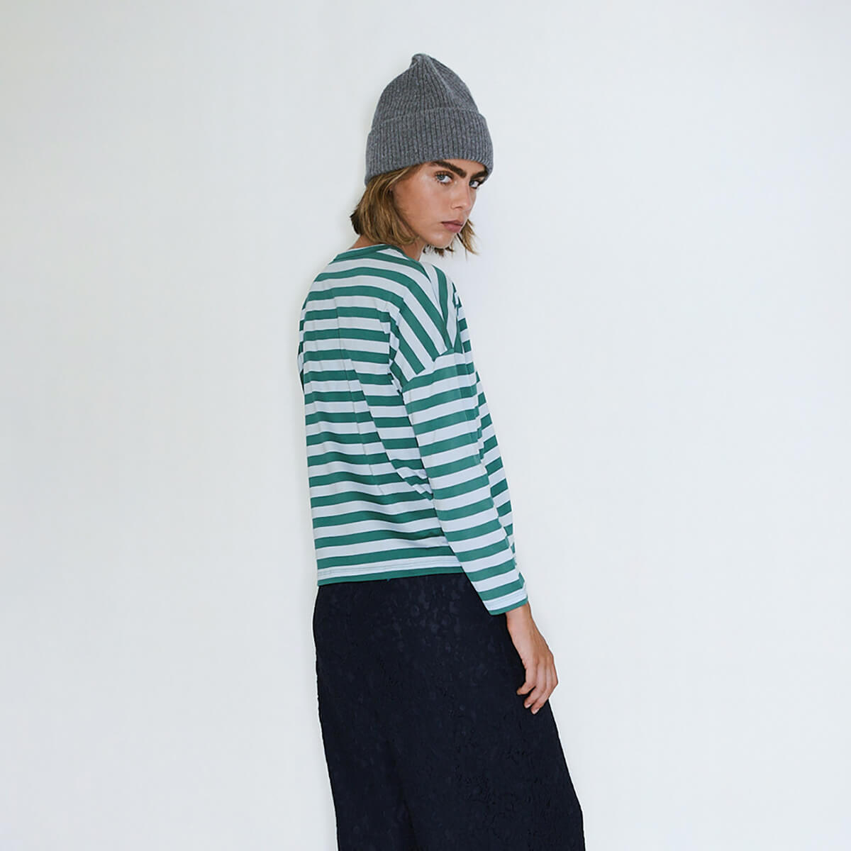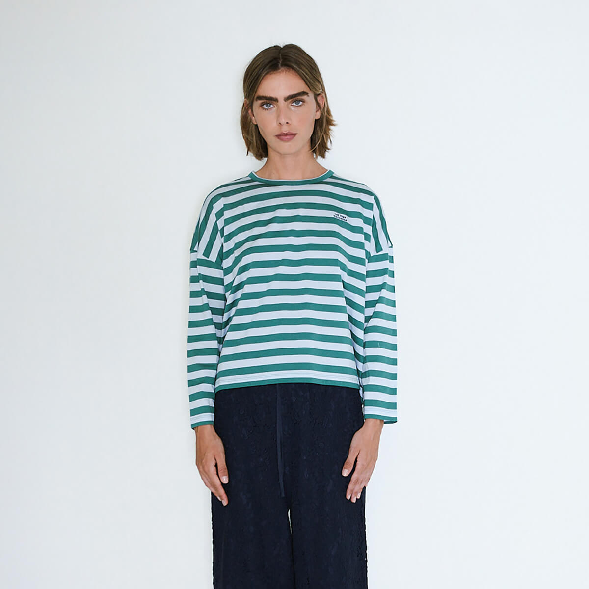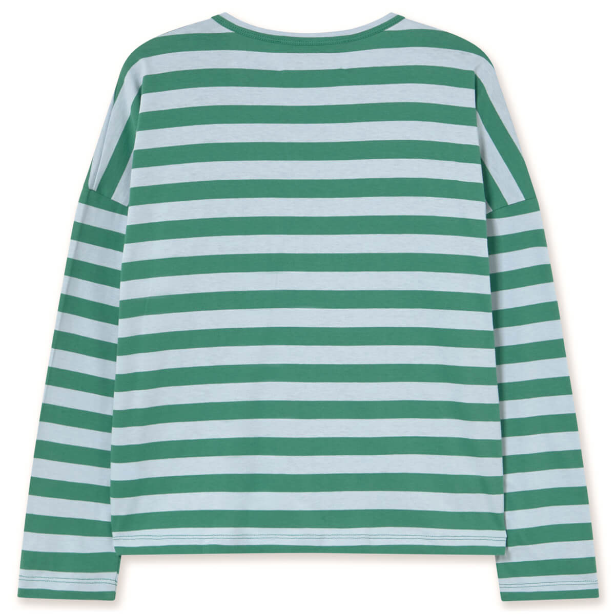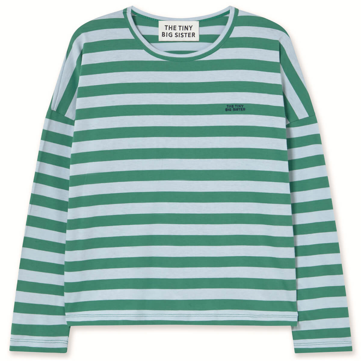 Striped Long Sleeve Tee in Dark Green / Washed Blue by The Tiny Big Sister