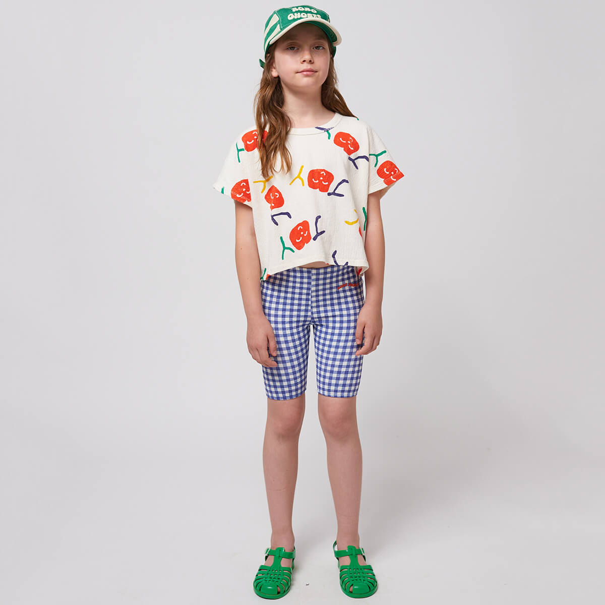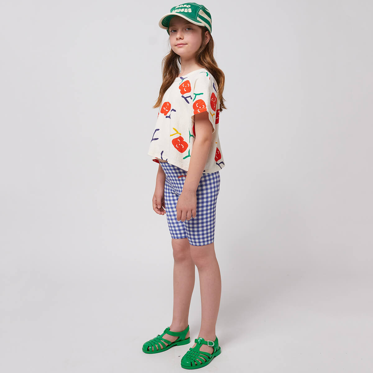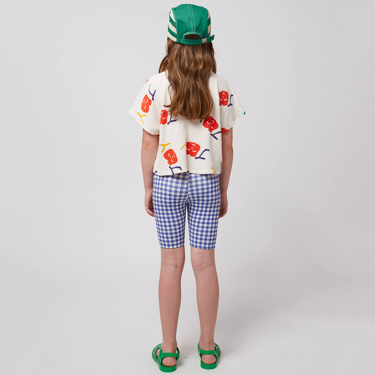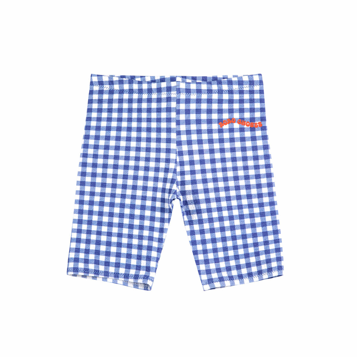 Vichy Legging Shorts by Bobo Choses. Stylish and easy to wear, these blue pants are designed for modern comfort. They feature a regular crotch, elasticated waistband, and slim fit. Over-the-knee length adds versatility to their sleek design. Lovingly crafted in Spain.