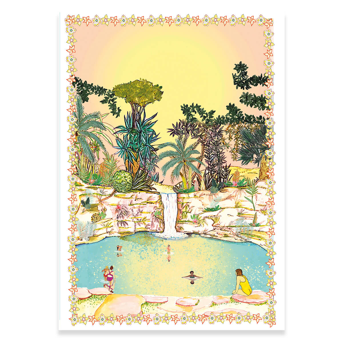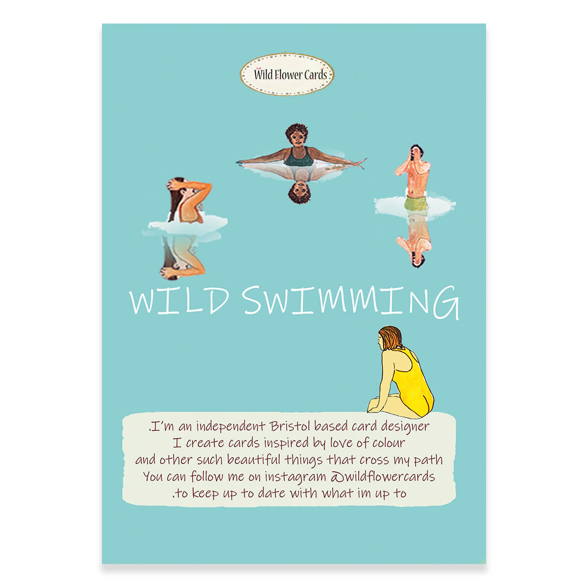 Wild Swimming greetings card by Wildflower Cards. Features an illustration by Grainne Thompson on both the front and back of the card. Blank inside with cream envelope.