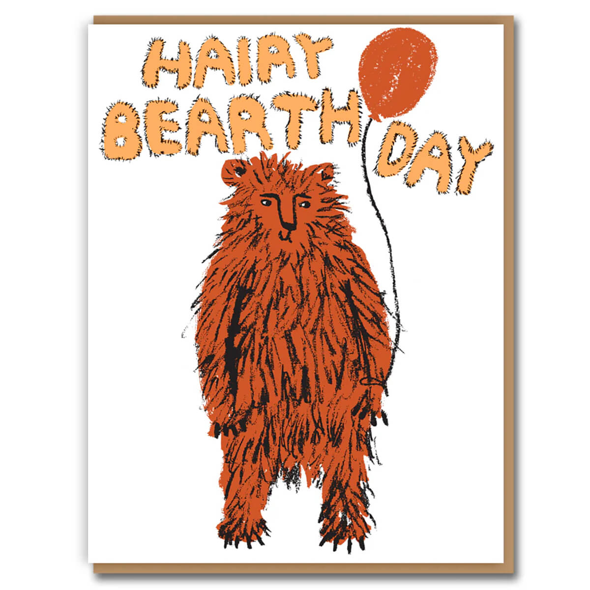 Brace yourselves for a "hairy" happy birthday! Egg Press brings you the Hairy Bearthday card, starring a lovably fuzzy bear and a red balloon. It's their special day so lets make it 'un-bear-lievably' fantastic.