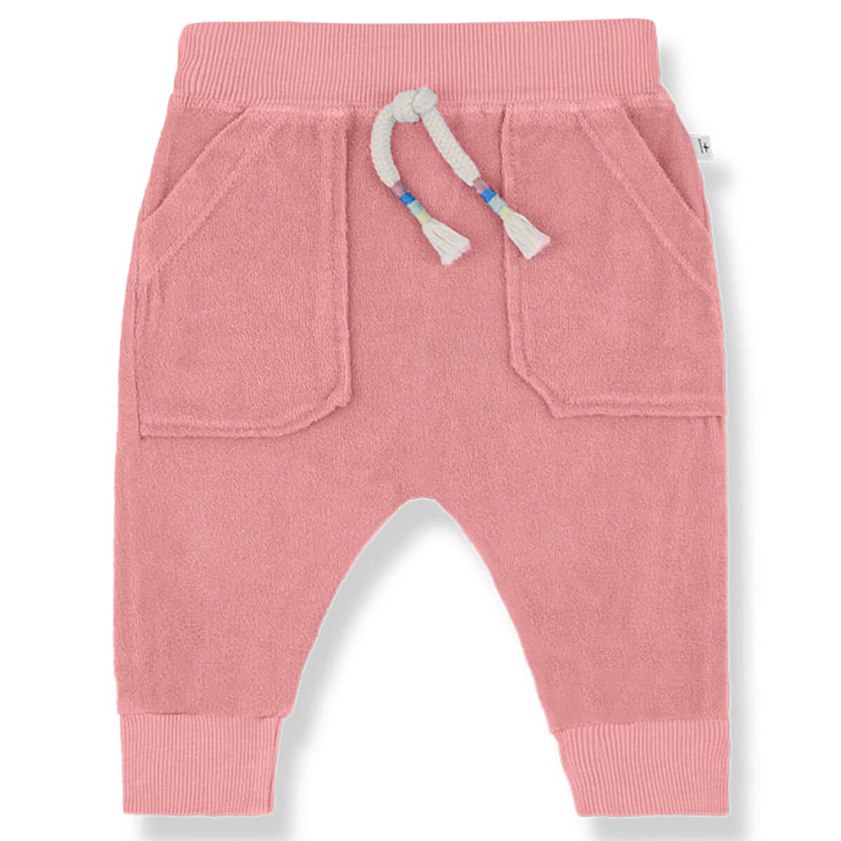 Farrutx Pants by 1+ in the Family. Baby trousers in a soft cotton terry, featuring ribbed hems and waist, front patch pockets and waist tie detail.