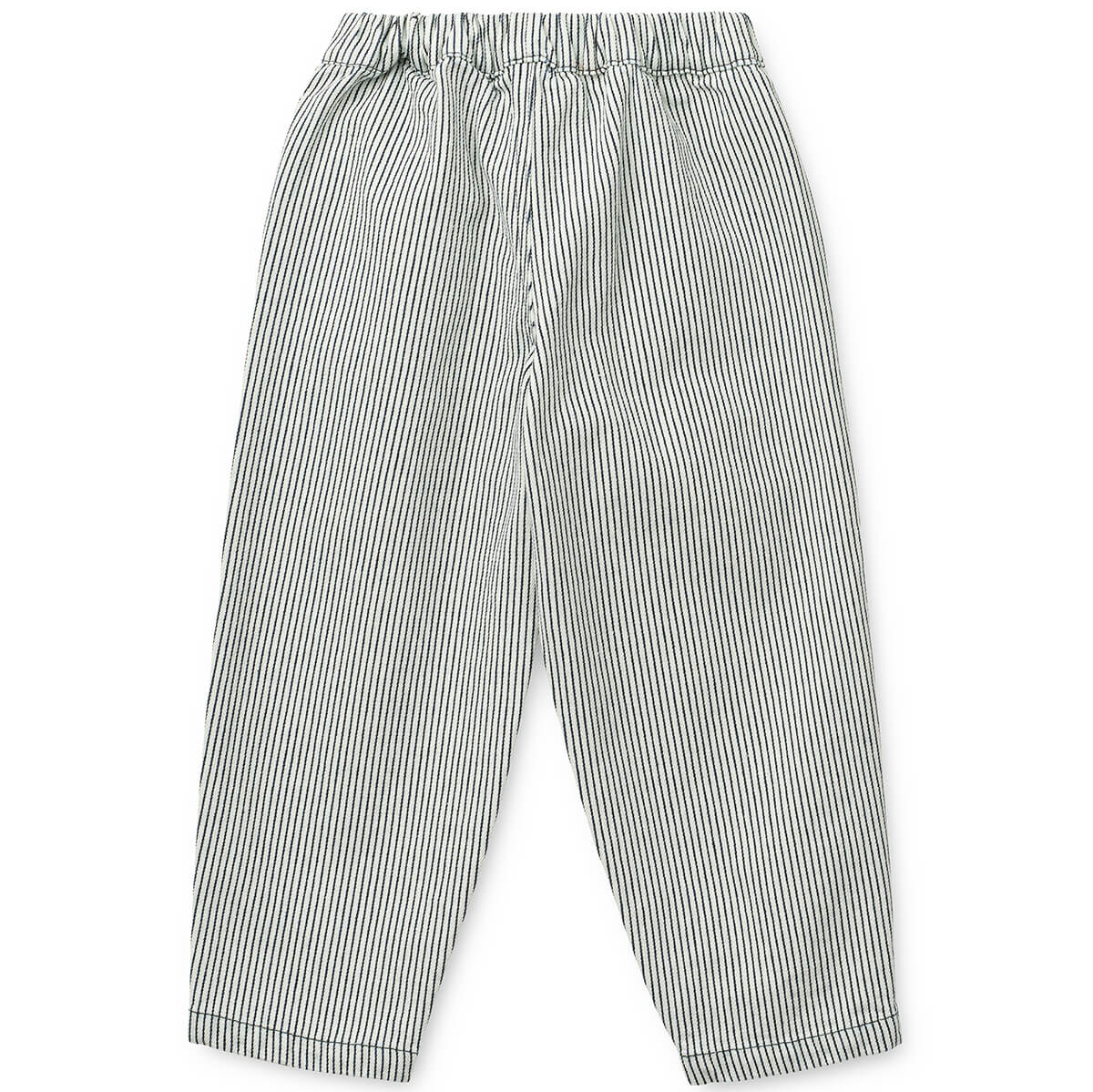 Borris Stripe Denim Pants by Liewood. Cool denim trousers in soft cotton. Relaxed fit and curved legs with small pleats in the front and slanting side pockets. Comfortable fit with an adjustable elastic inside waistband.