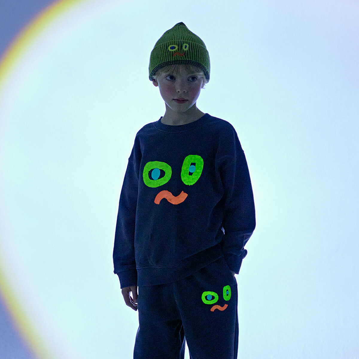 Catchy Face Glow in the Dark Sweatshirt in Charcoal by Jelly Mallow