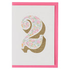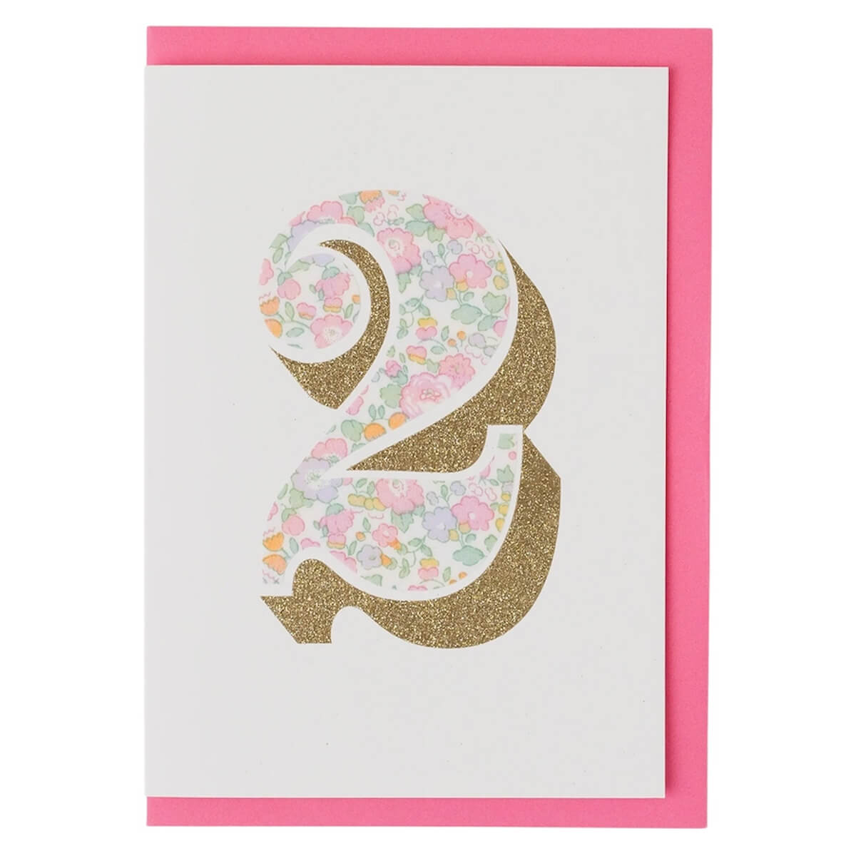 Age 2 Greetings Card in Betsy Ann Liberty Print by The Charming Press. Second birthday card featuring a beautiful glittery number print. Made with a biodegradable glitter. Celebrate those special childhood birthdays in style with this gorgeous, eco-friendly card!