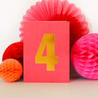 Age 4 Birthday Greetings Card by Kali Stileman Cards. A gloriously golden number one card! This mini card is perfect for little people’s birthdays or anniversaries alike. Set on a fuchsia background.