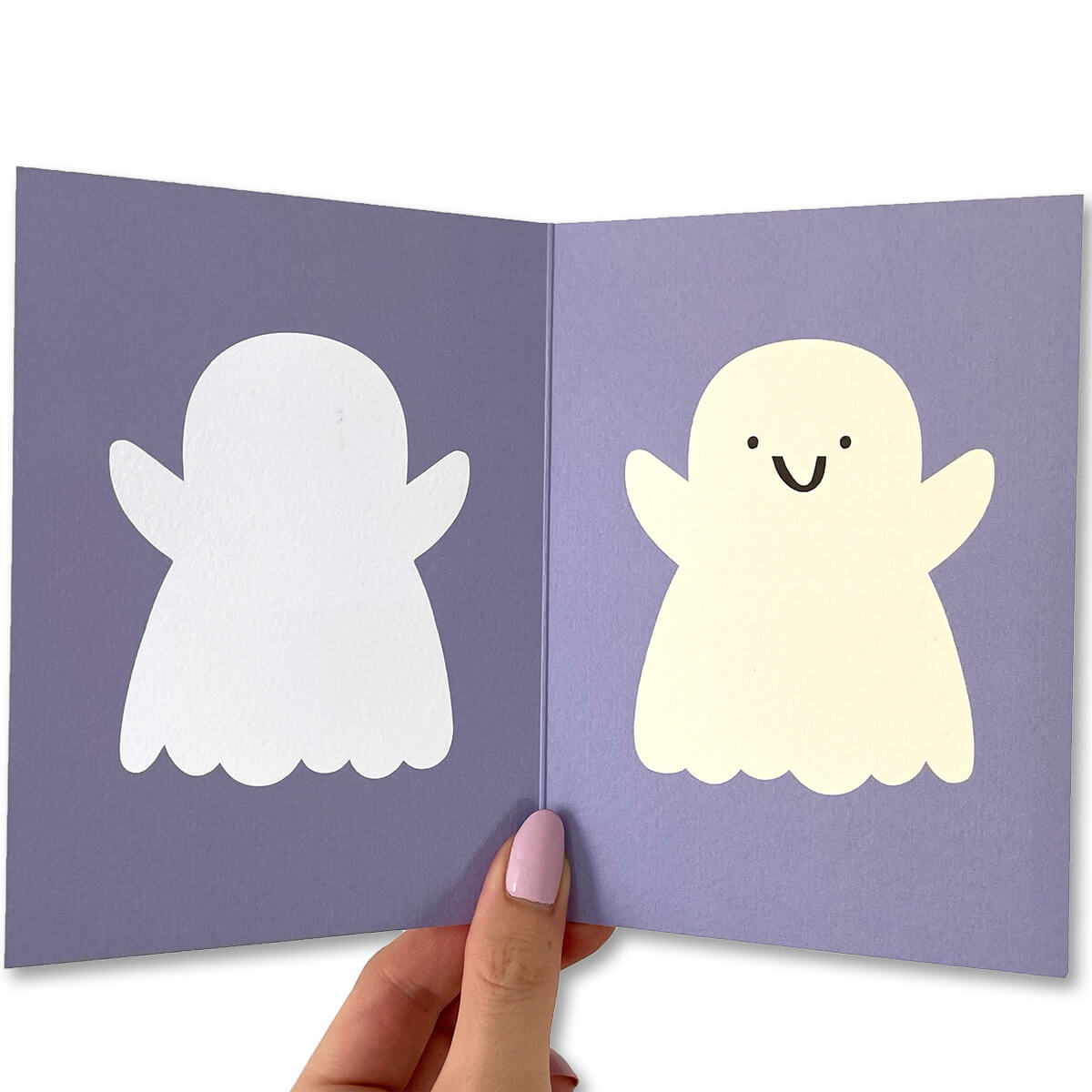 Ghost Greetings Card by Rumble Cards. Die cut greetings card. Blank inside for your own message.