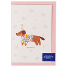 Liberty Sausage Dog Birthday Greetings Card in Wiltshire Bud Liberty Print by The Charming Press