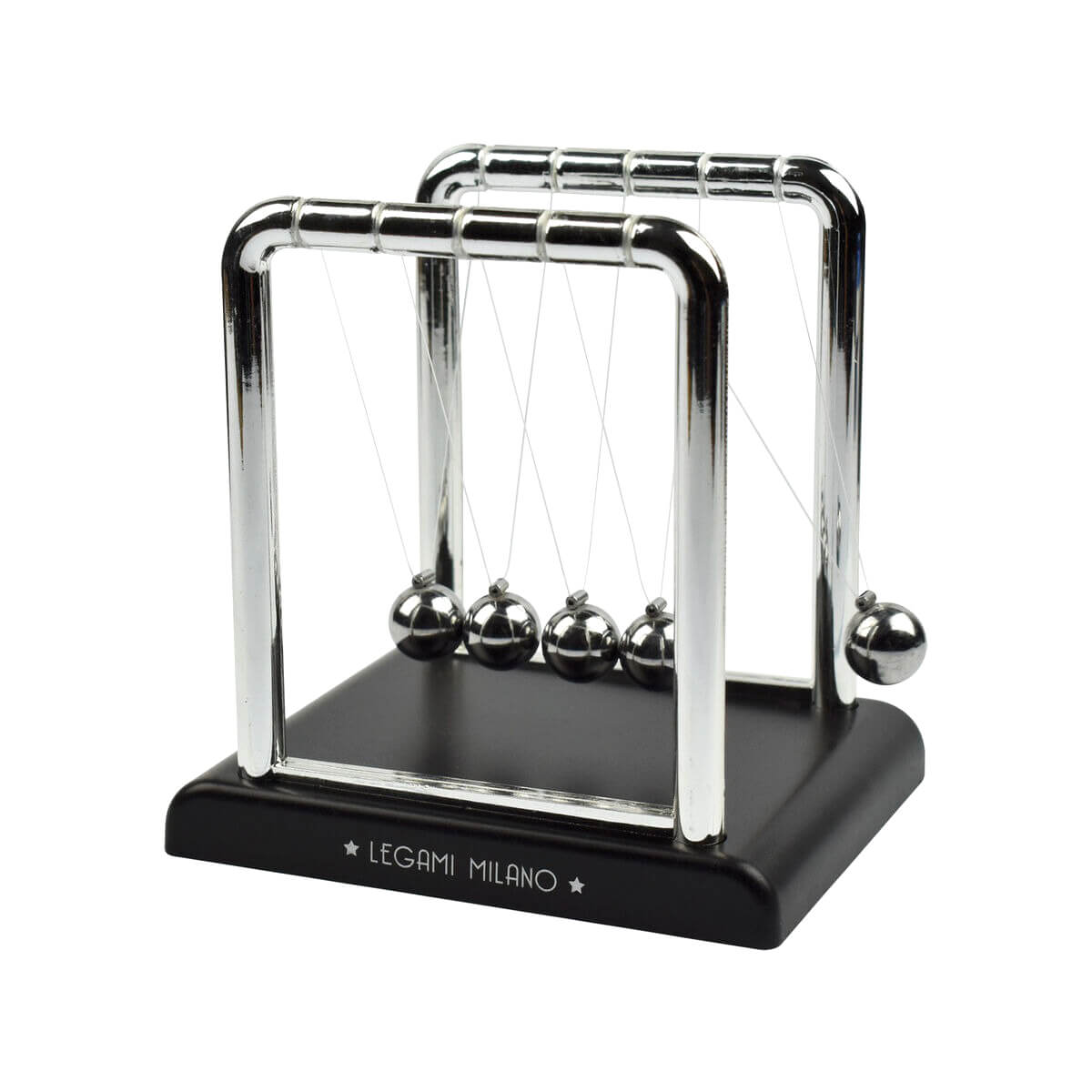 Newton's Cradle by Legami. Newton’s Cradle is a classic vintage object for your desk. Demonstrating Newton’s laws of motion, this enduring favourite consists of five metal balls hanging from two wires. When you pull the first ball away and let it fall back to hit the others, the ball on the opposite side will move with the same momentum as the first. Watching the perpetual movement and hearing the sound of the balls hitting each other is said to stimulate creativity, concentration and relaxation thanks to its hypnotic quality.