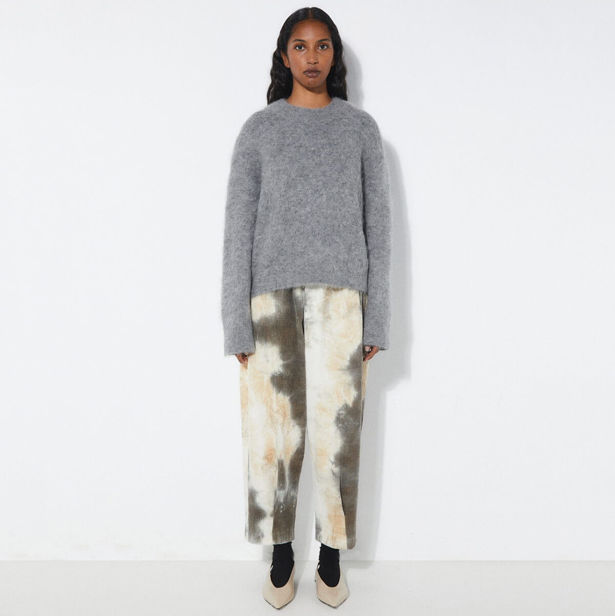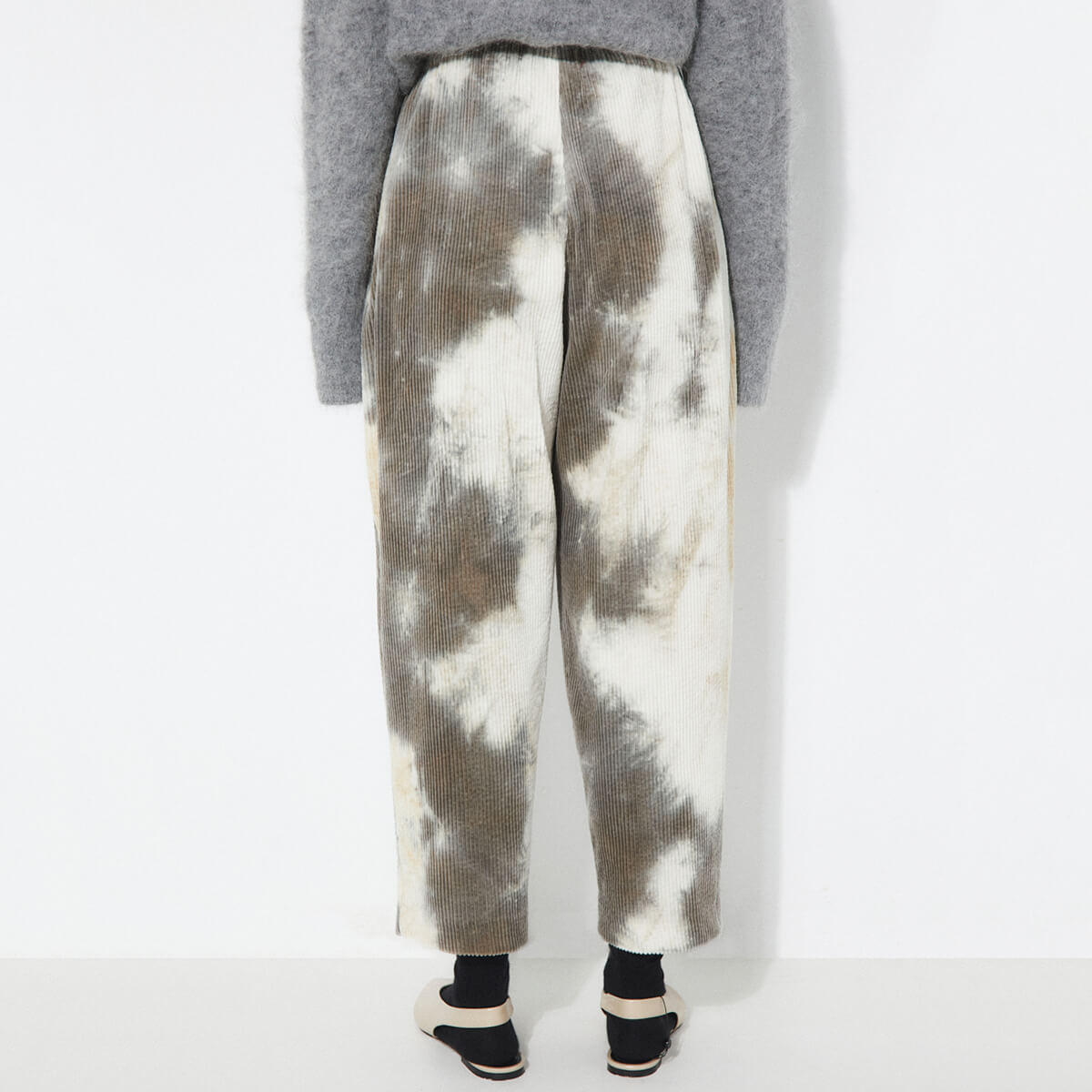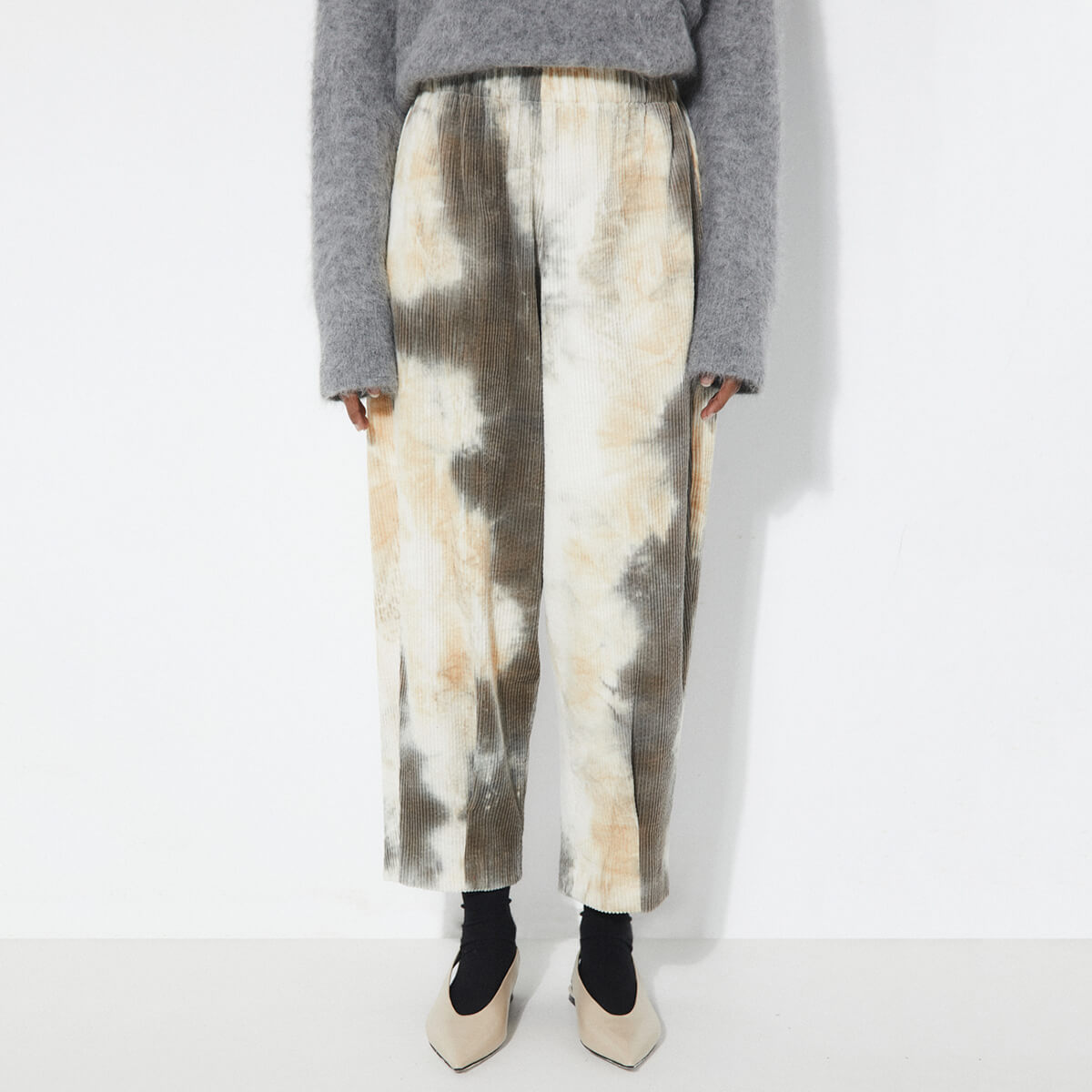 Dmitri Pants by Rita Row. Cotton corduroy harem trousers, with an elastic waistband and side pockets. Pleated details on the hem.
