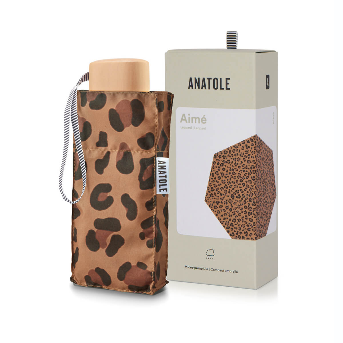 Aimé Compact Umbrella by Anatole. You'll be looking forward to the next rainy day with this leopard print umbrella.