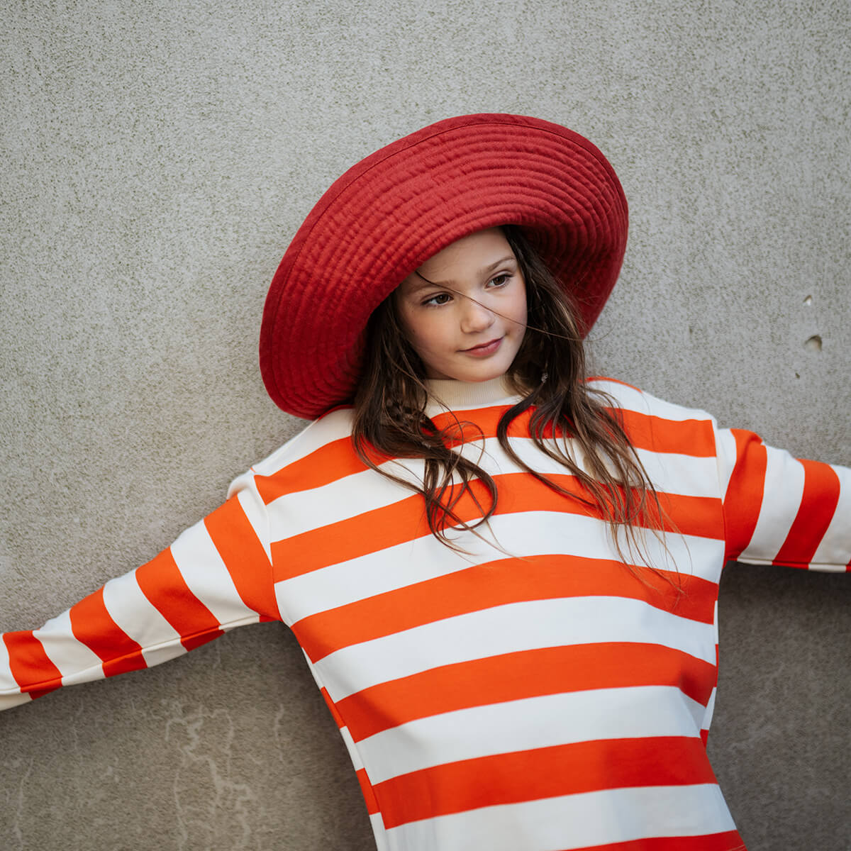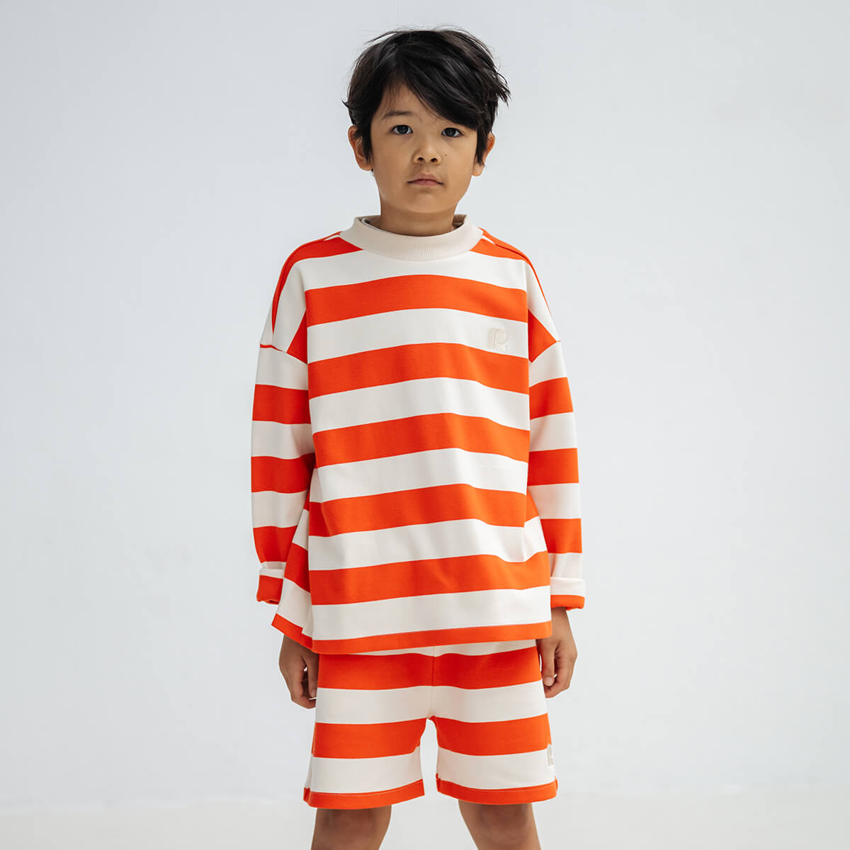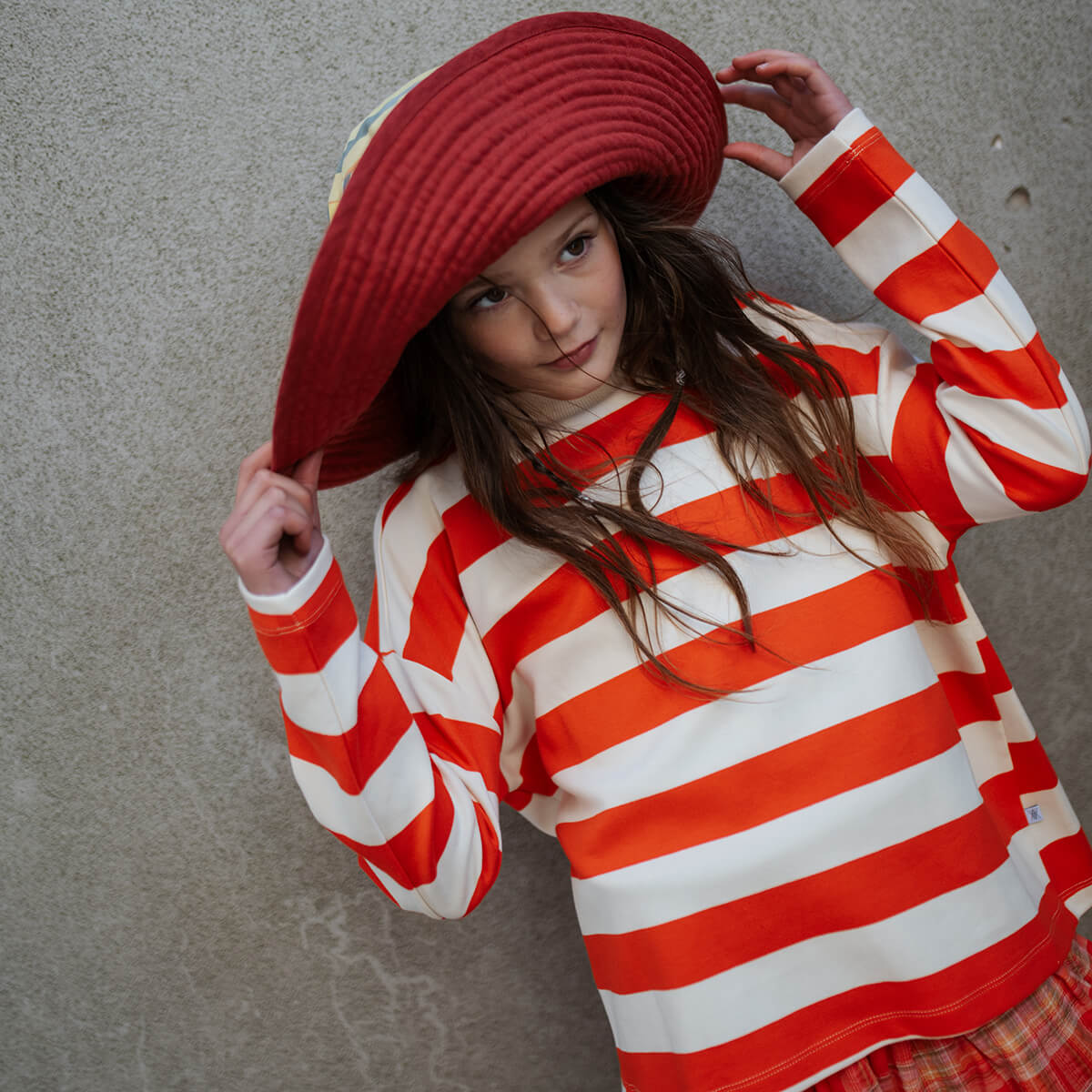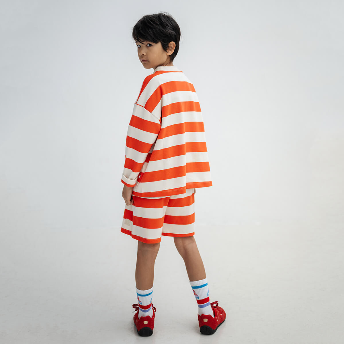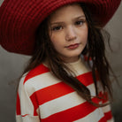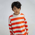 Boxy Sweater in Flame Red Block Stripe by Repose AMS