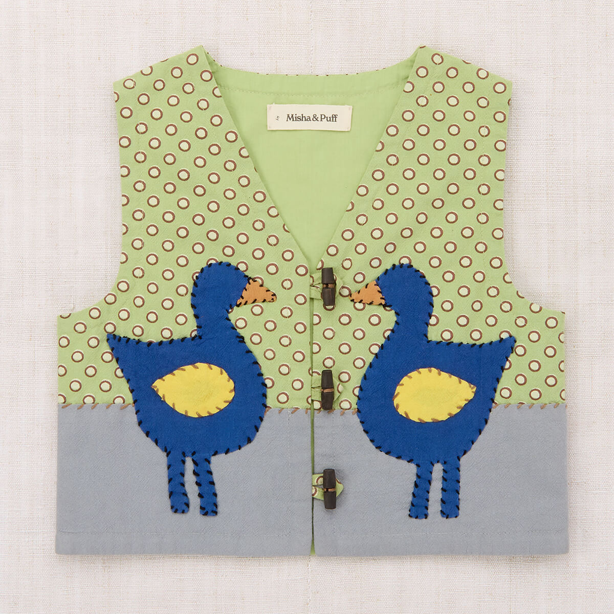 Flock Appliqué Vest in Aventurine Ben-Day Dots by Misha & Puff