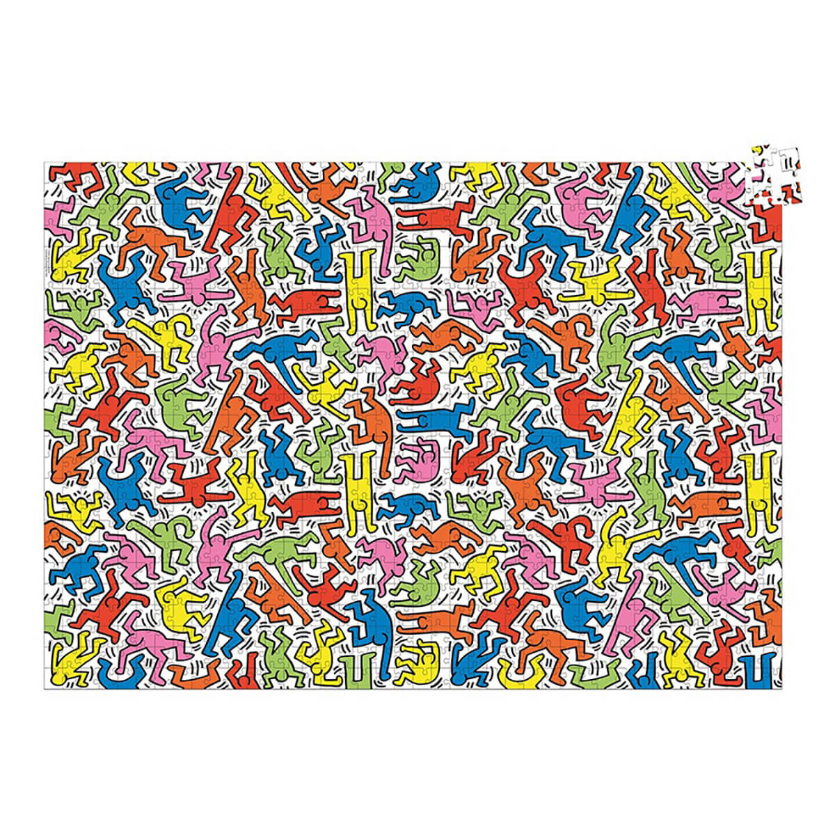 Keith Haring 1000 Pc Puzzle by Vilac. This 1000 piece cardboard puzzle uses iconic patterns from Keith Haring for a unique and original result which makes this puzzle a real puzzle!