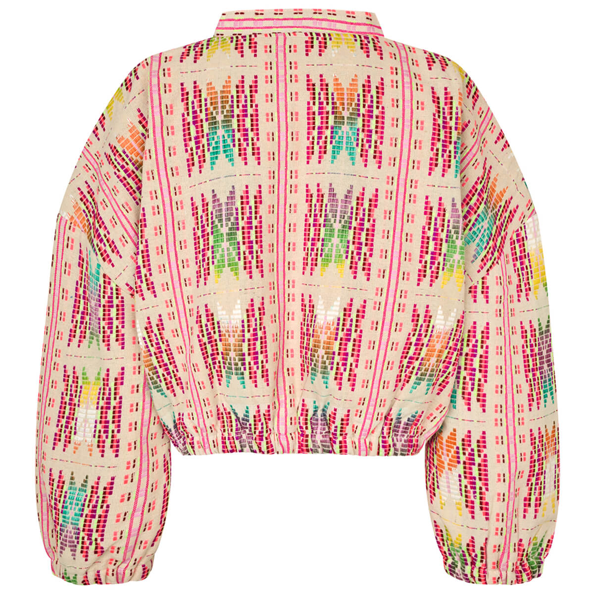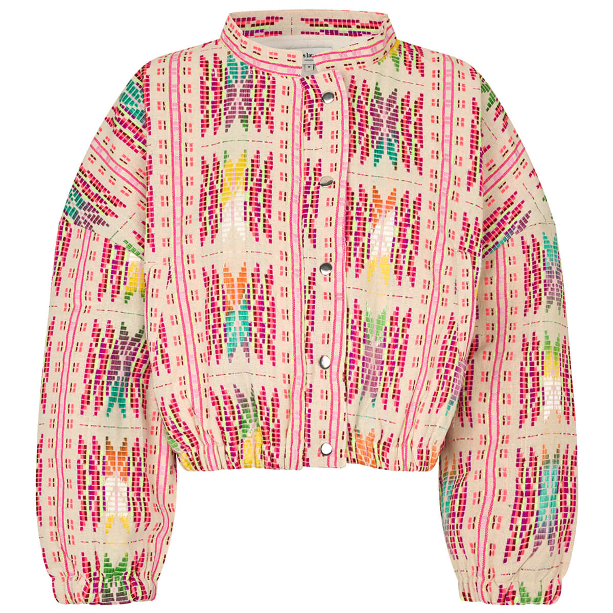 Lama Jacket by Lollys Laundry. Lama is a colourful jacket that gives your look a personal twist. The beautiful woven pattern in bright tones creates an artistic expression, making it perfect for both everyday wear and special occasions. A light and comfortable jacket you can style over dresses, shirts or a simple tee.