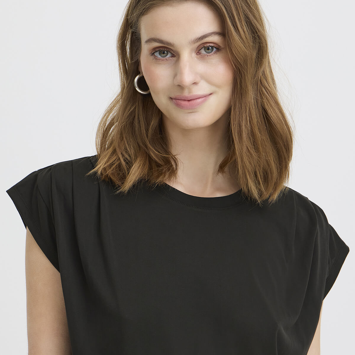 Lisken Top by ICHI. This top blends elegance and comfort with a soft, lightweight fabric that offers a flattering fit. The breathable material ensures all-day comfort, while the subtle sheen adds a sophisticated touch. Its timeless silhouette makes it easy to style – pair it with high-waisted trousers for a relaxed look or with a blazer for a more polished outfit. A versatile wardrobe staple for any occasion.