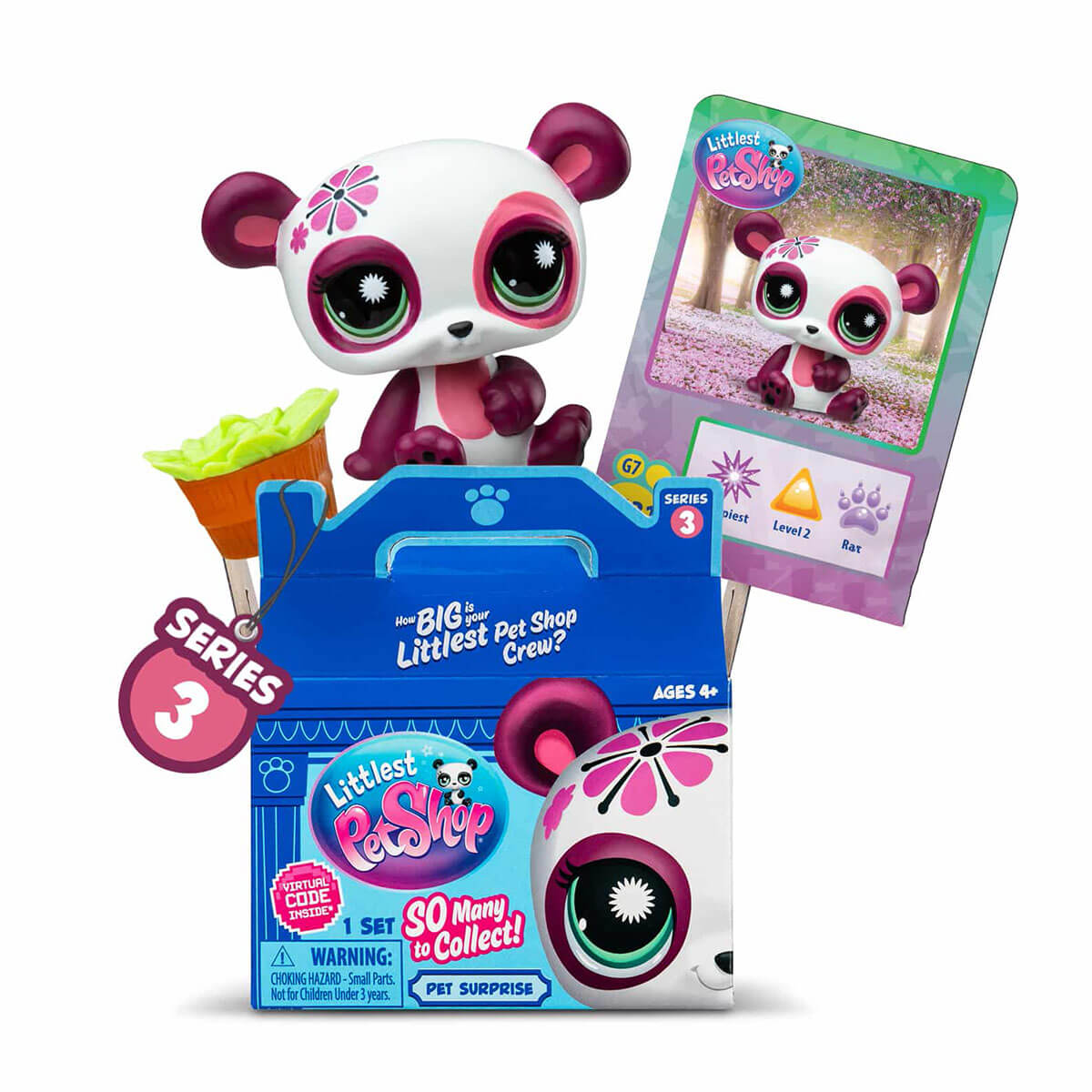 Littlest Pet Shop Series 3 Pet Surprise Blind Box by Bandai. Unbox a world of fun with the Littlest Pet Shop Pet Surprise Singles, Series 3! With 18 all-new bobblin’ pets to collect, including pets #131 – #148, you can grow your LPS crew one surprise at a time! Each Pet Surprise Singles box holds a hidden pet just waiting to be revealed. Who will you discover next? Along with your new bobblin’ buddy, you’ll find a mini accessory to add to the fun. Collect more pets to mix and match accessories for endless imaginative play! Plus, each box includes a collector card that reveals your pet’s unique personality, level, and rarity – will they be the sassiest, fanciest, or something else? Start your collection and bring home a new bobblin’ friend with every LPS Pet Surprise Single!