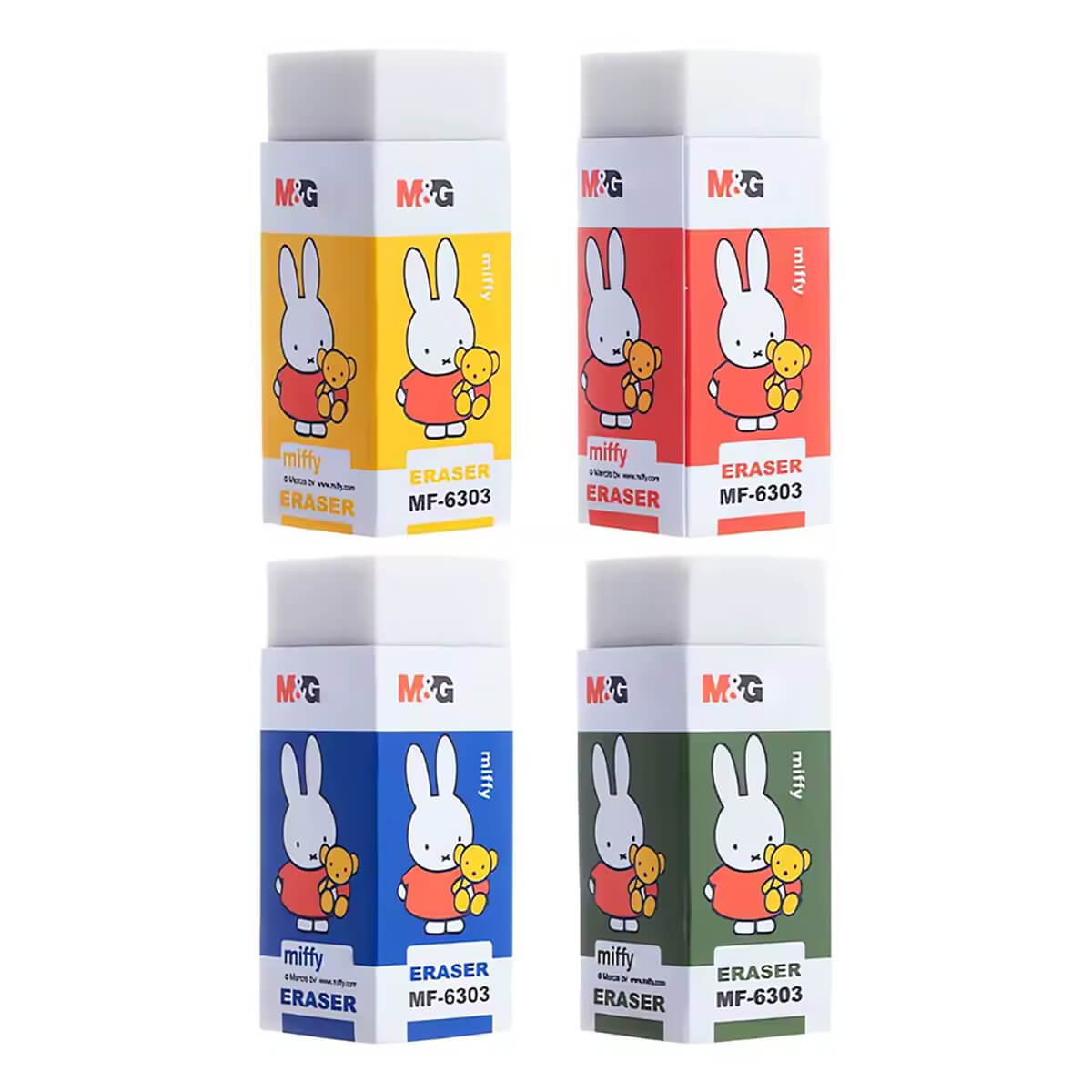 Miffy Eraser by M&G. A handy little eraser with a cardboard sleeve featuring Miffy. Available in four primary colours - colour picked at random.