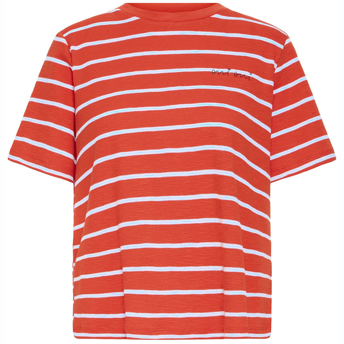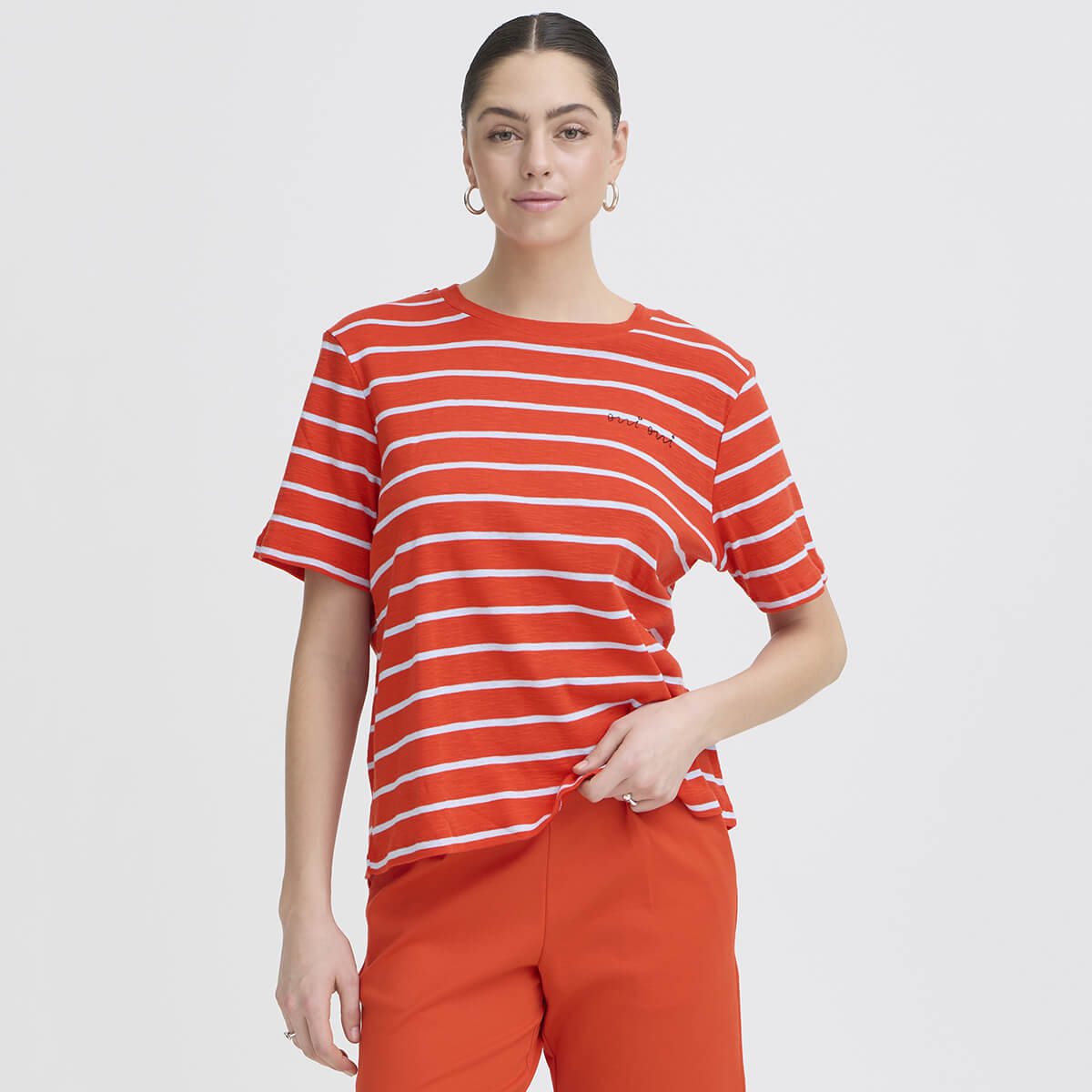 Nova T Shirt by ICHI. This striped T-shirt features a straight, casual fit with a classic crew neckline and short sleeves.