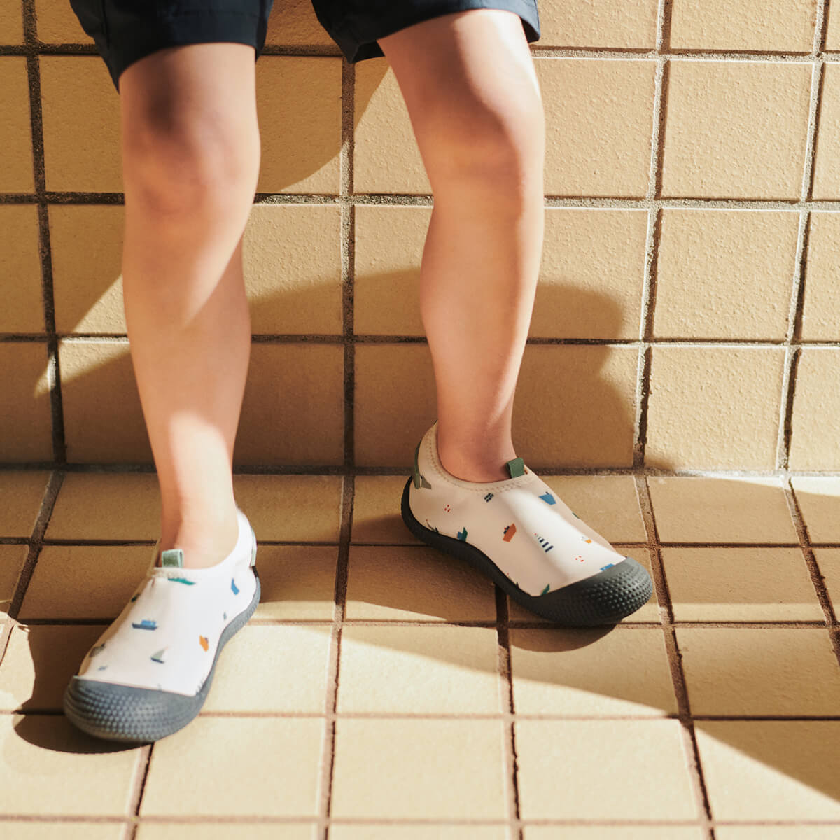Sanjia Sea Shoes by Liewood. Protect little feet from seashells and pebbles with the SANJIA beach shoes as they venture on curious explorations at the sea. The durable and textured soles provide the foundation for safe steps, while the quick-drying neoprene feels light and comfortable.