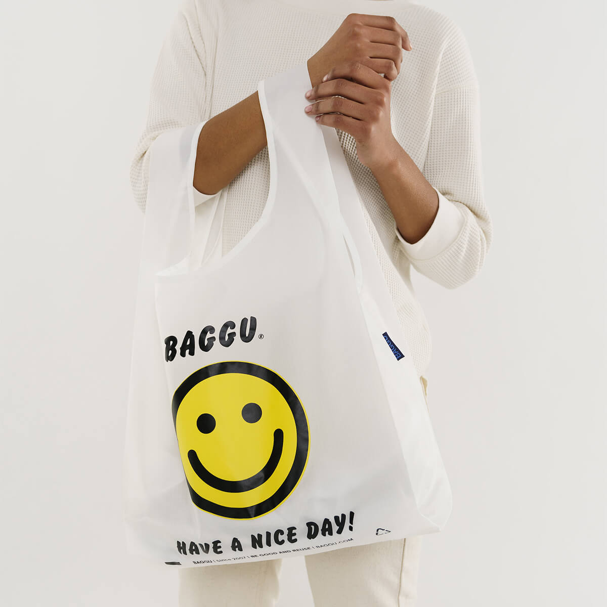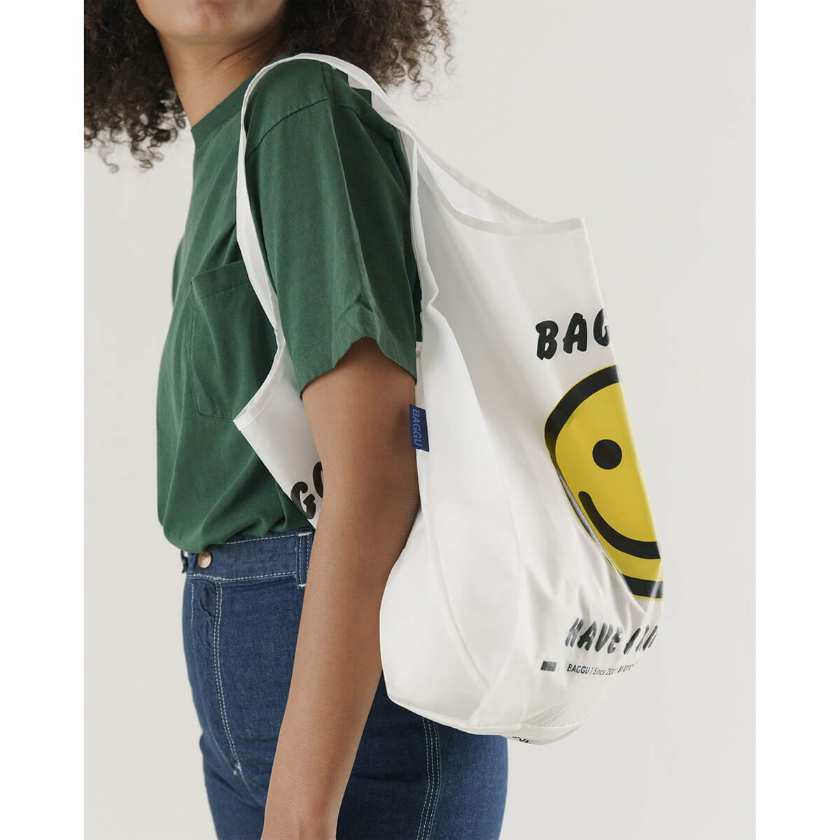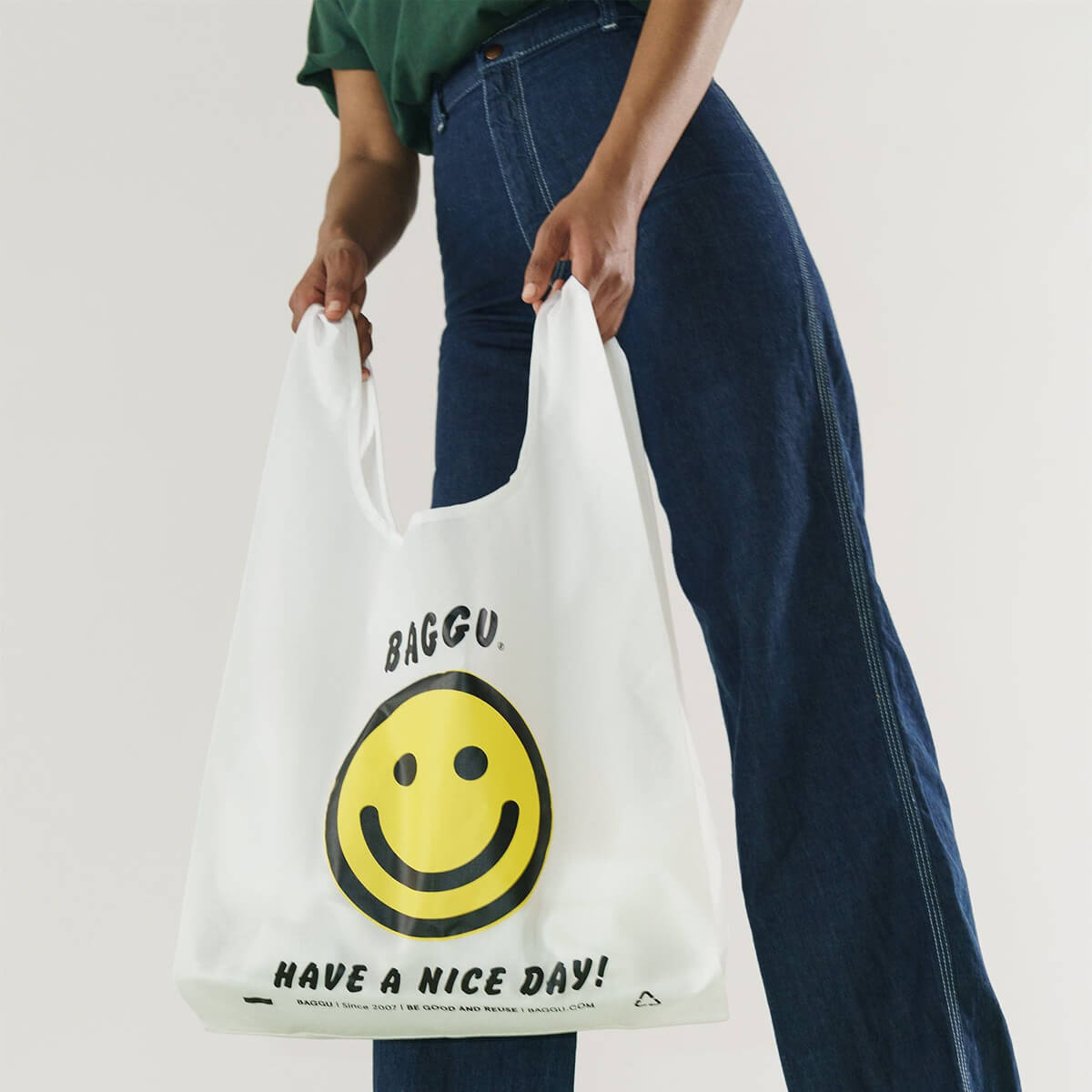 Standard Bag by Baggu. Baggu's best selling reusable bag isn't just for the grocery store, it goes everywhere and hauls almost anything. Carries 2-3 plastic grocery bags worth of stuff comfortably in hand or over your shoulder.