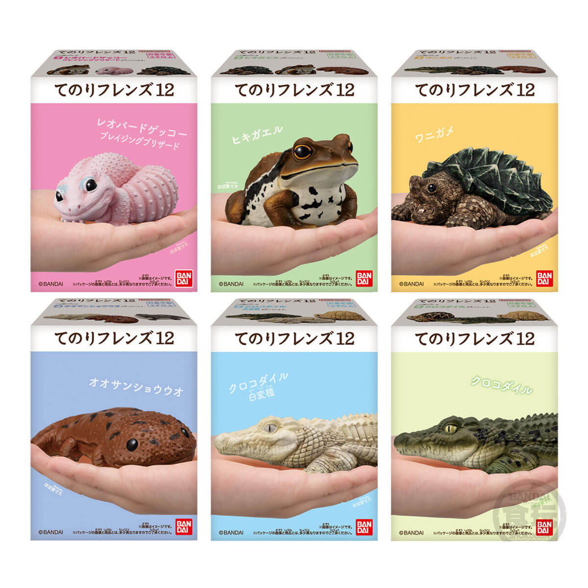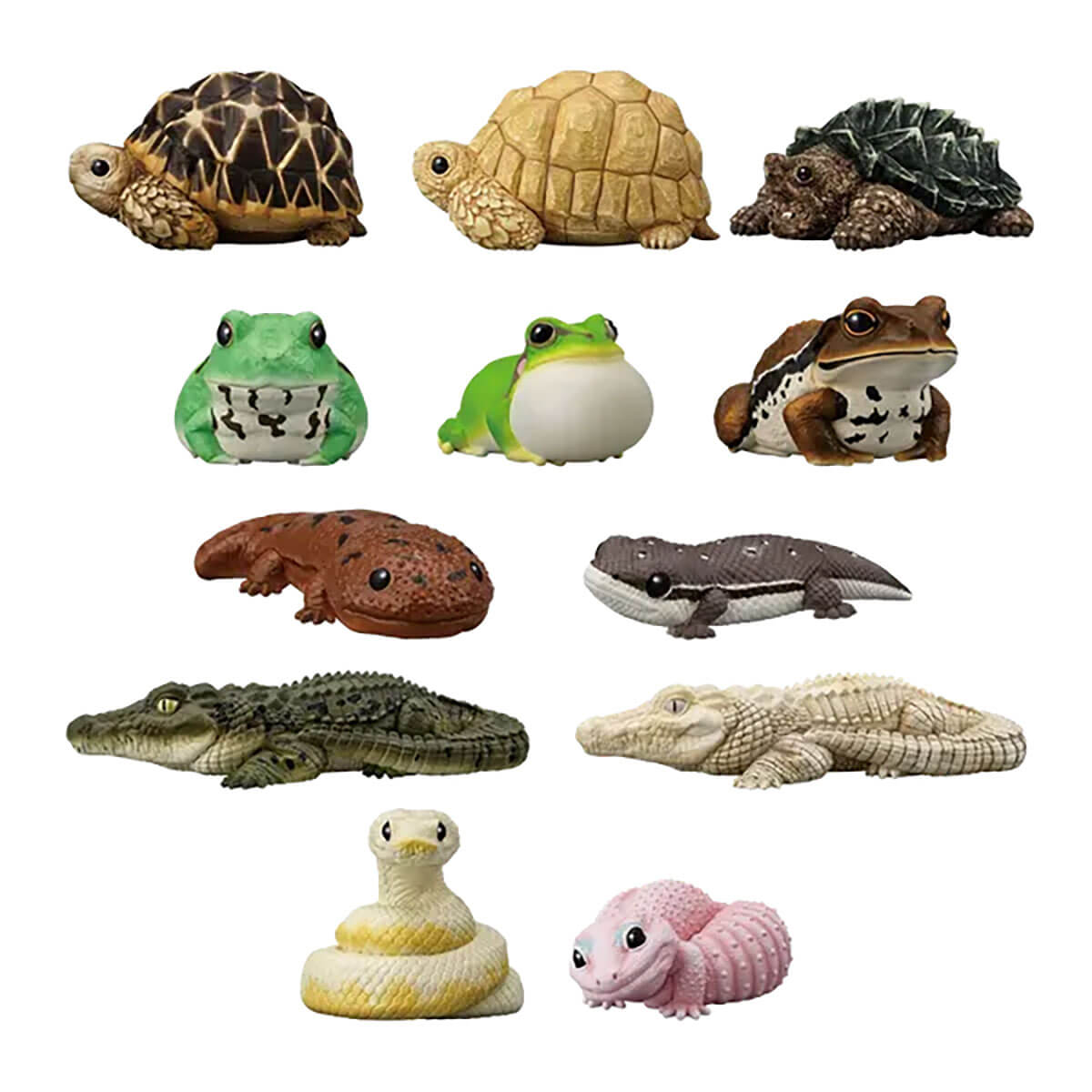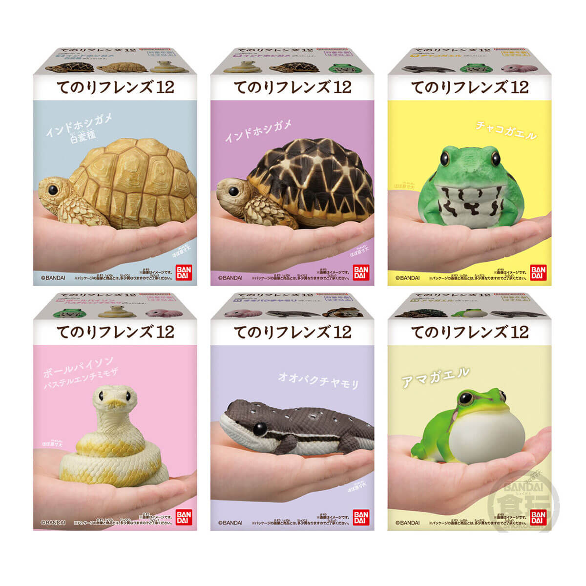 Tenori Friends Reptiles & Amphibians Figure Blind Box by Bandai. The Tenori Friends series features a lineup of miniature animal figures including tortoises, frogs, crocodiles, and more! Each adorable palm-sized figure is full of lifelike detail and personality - perfect for collectors or desk companions. 12 styles to collect.