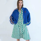 Tulle Midi Dress by Lollys Laundry. A charming and timeless shirt dress with a modern striped design. The Tulle dress is made from a soft and comfortable quality, perfect for both everyday wear and special occasions. The diagonal stripes on the front create a flattering and eye-catching look that gives the dress a unique twist.
