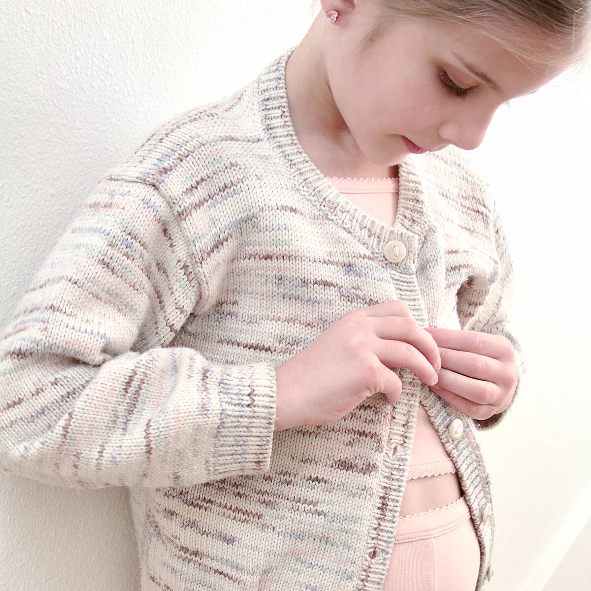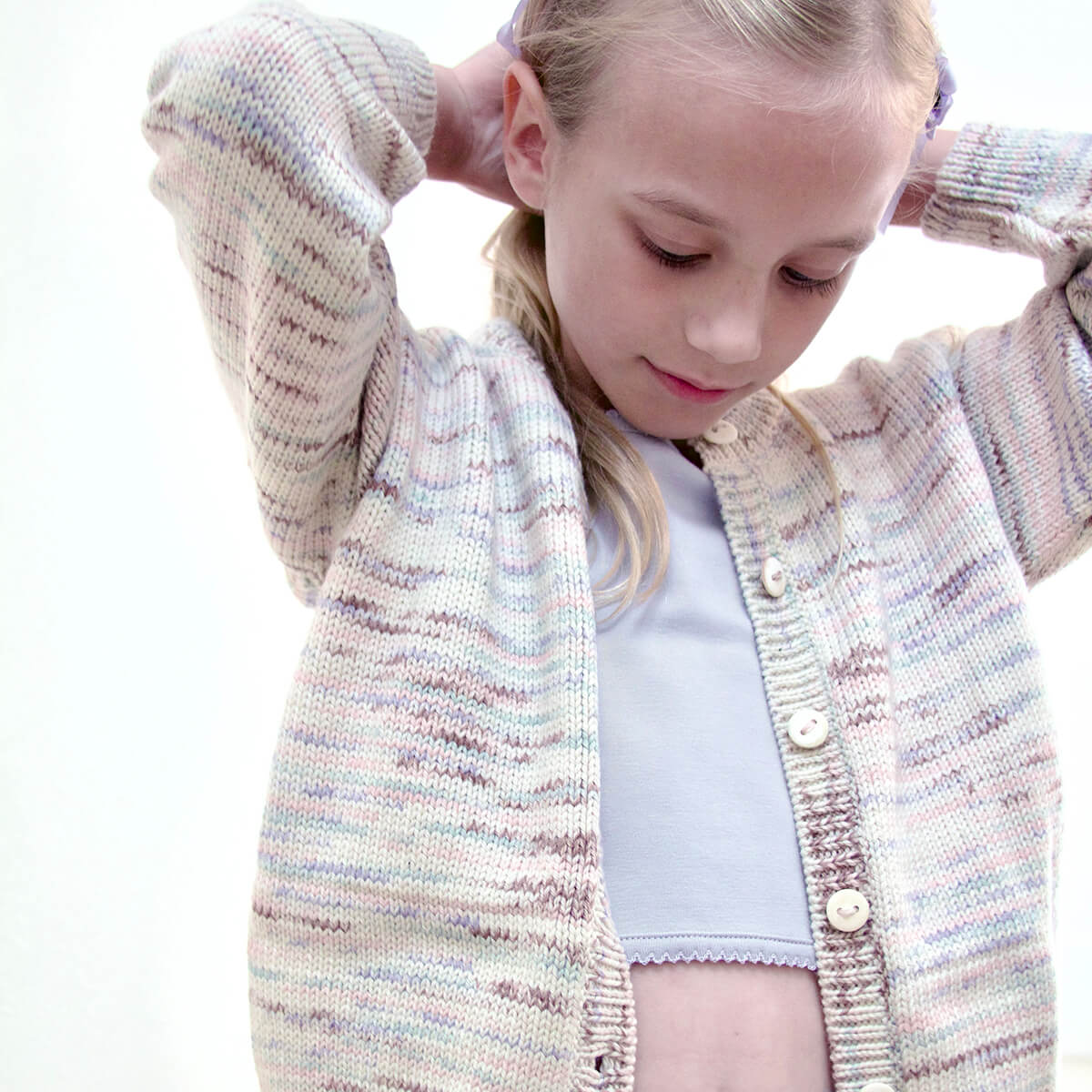 Watercolour Cardigan by Iver & Isla. Versatile cardigan in a stunning watercolor effect yarn.