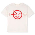 Wynken Tee by Wynken. Soft, breathable 100% organic cotton makes this ecru t-shirt gentle on the skin and comfortable all day long. The bright red Wynken logo and micro text stand out against the ecru base, adding a playful, signature touch.