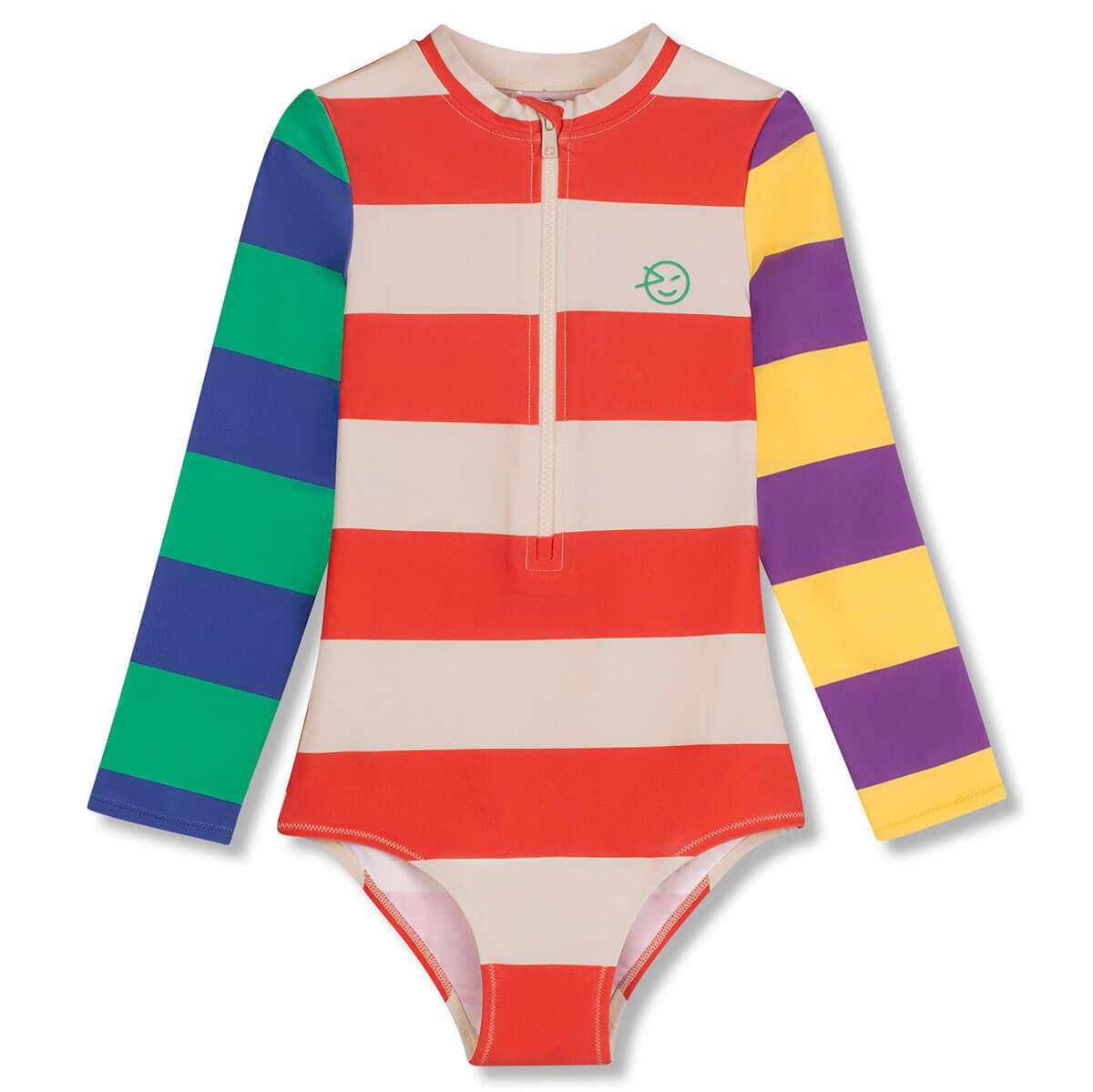 Long Sleeve Swimsuit in Pillar Red / Ecru Stripes by Wynken