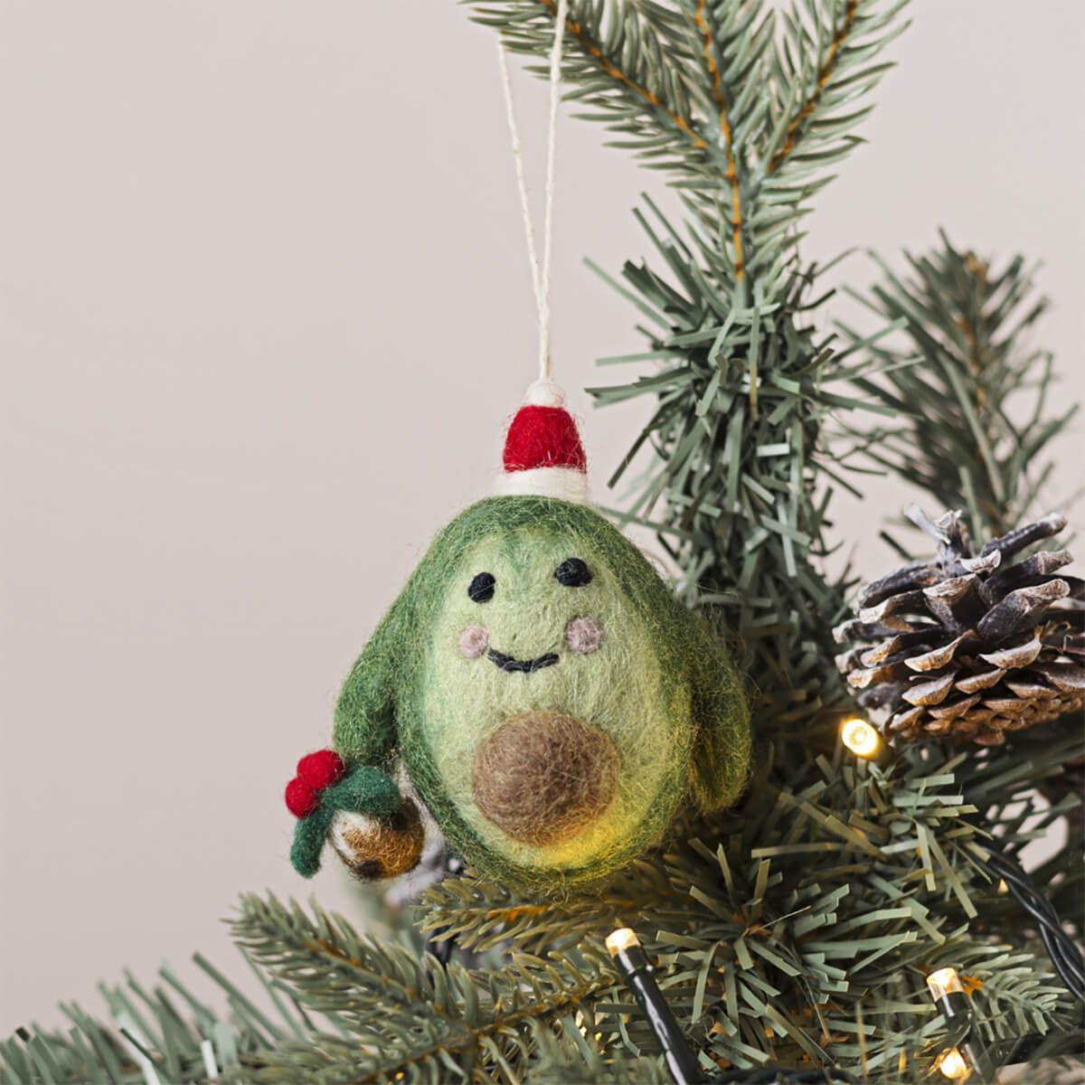 Christmas avocado hanging decoration by Amica. A beautiful, handmade and fair trade felt decoration.