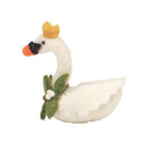 Mini Swimming Swans 12 Days Of Christmas hanging tree decoration by Amica. With these you can have your very own Swan Lake at Christmas! These little white swans come with either a mistletoe or holly wreath elegantly draped around their necks and to remind you that all swans belong to the monarchy, each wears a crown. Full of handstitched and needle felted detail. A beautiful, handmade and fair trade felt decoration.