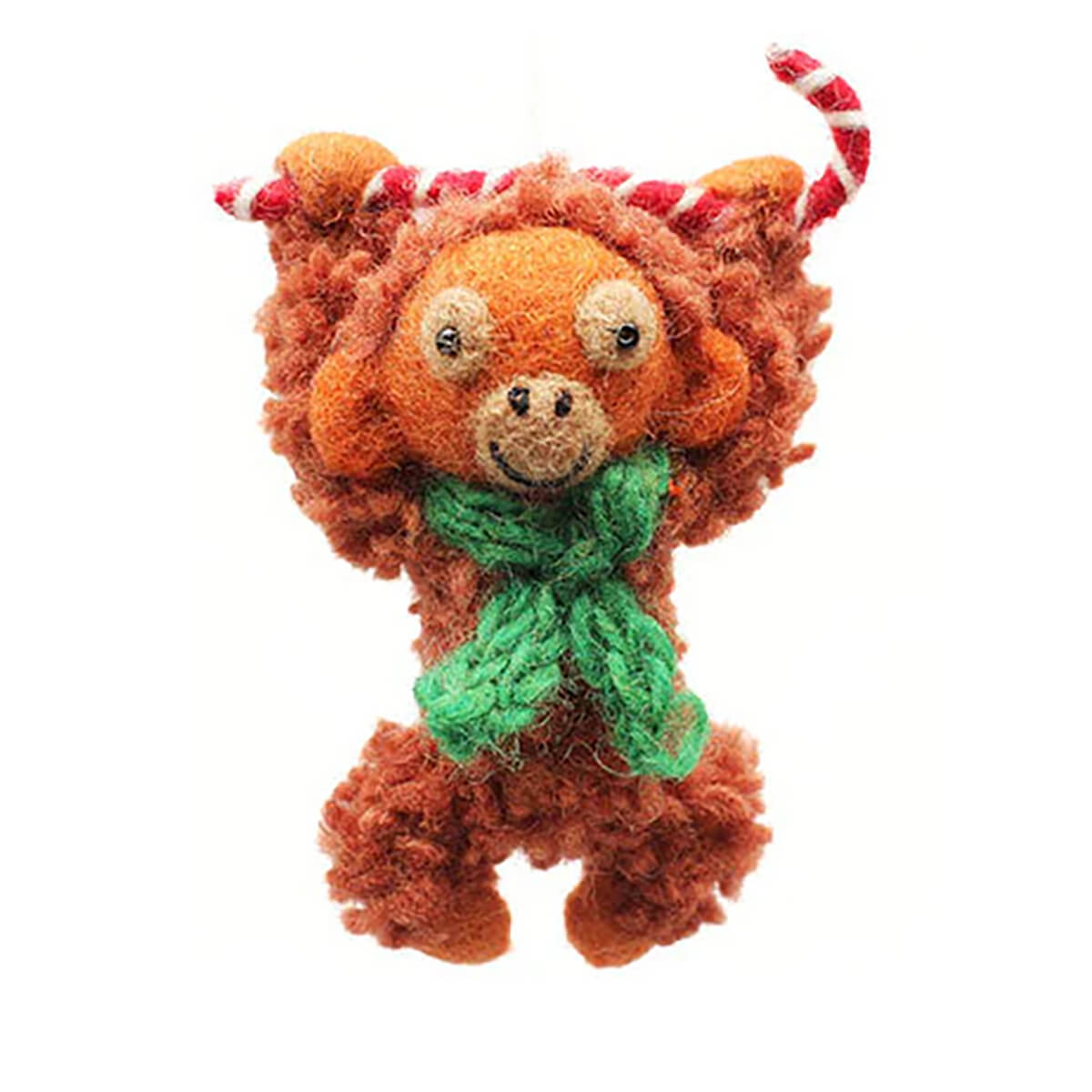 Orangutan With Candy Cane Hanging Christmas Decoration by Amica. This cheeky chappie is swinging from a candy cane rather than the trees! Comes with a hanging loop ready to go on the Christmas tree. A beautiful, handmade and fair trade felt decoration.