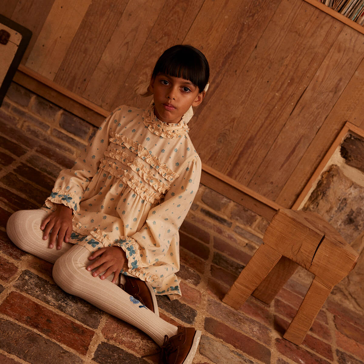 Pernille Dress in Meadow Calico Cashew by Apolina - Last One In Stock - 5-7 Years