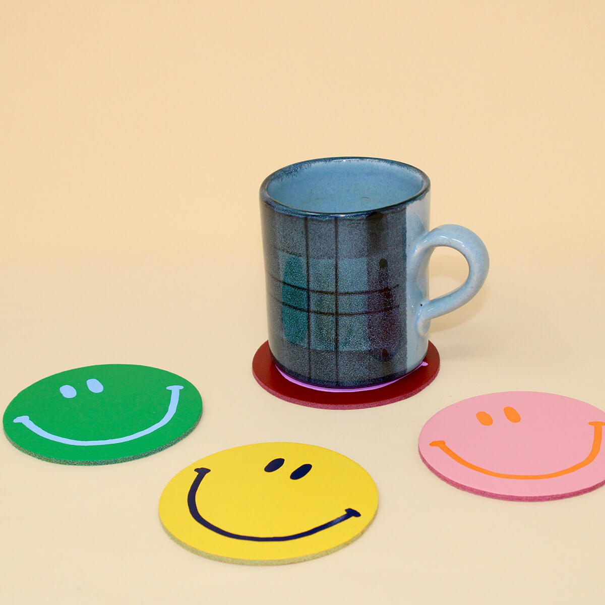 Set of Four Happy Face Coasters by Ark Colour Designs