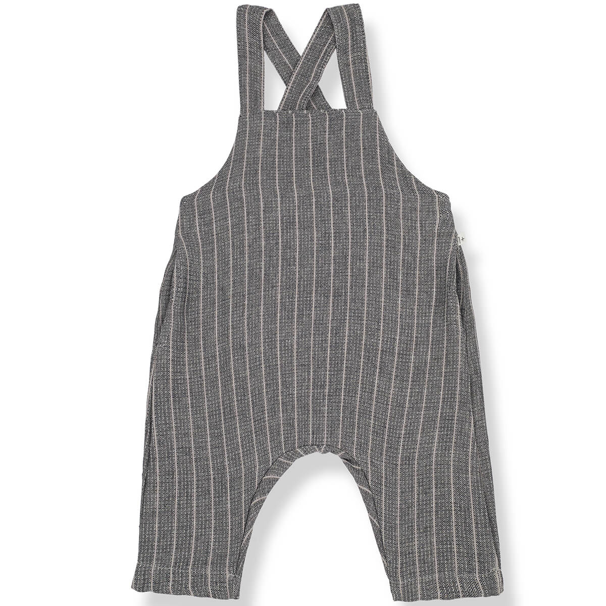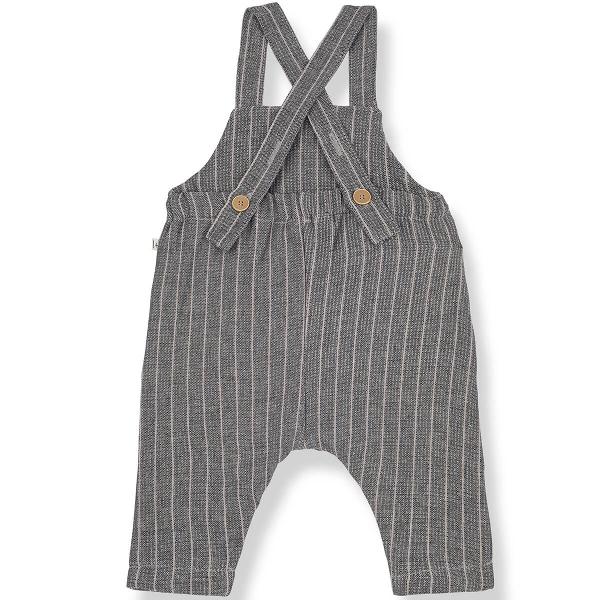 Ettore Overall by 1+ in the Family. Sweet baby dungarees in a diplomatic stripes double face fabric. With wooden button fastenings.