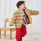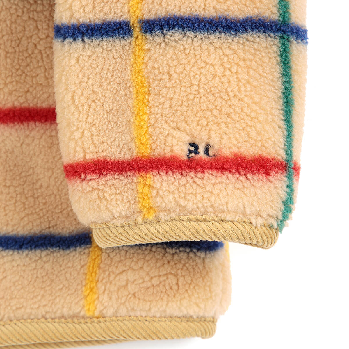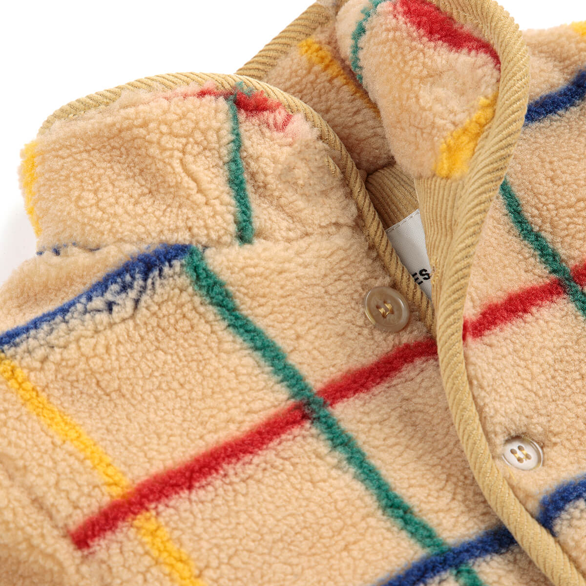 Faux Shearling Stripe Jacket by Bobo Choses. Keep your little ones cosy in this stylish check stripe jacket. Featuring dropped shoulders, front button fastening, a relaxed fit, seam pockets and a high neck for extra warmth.