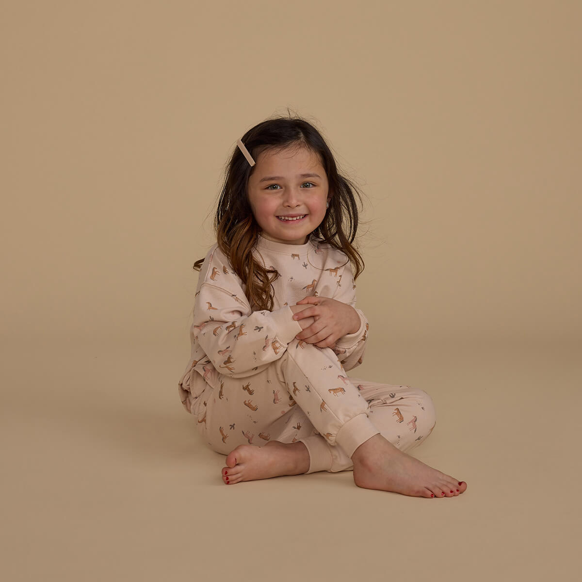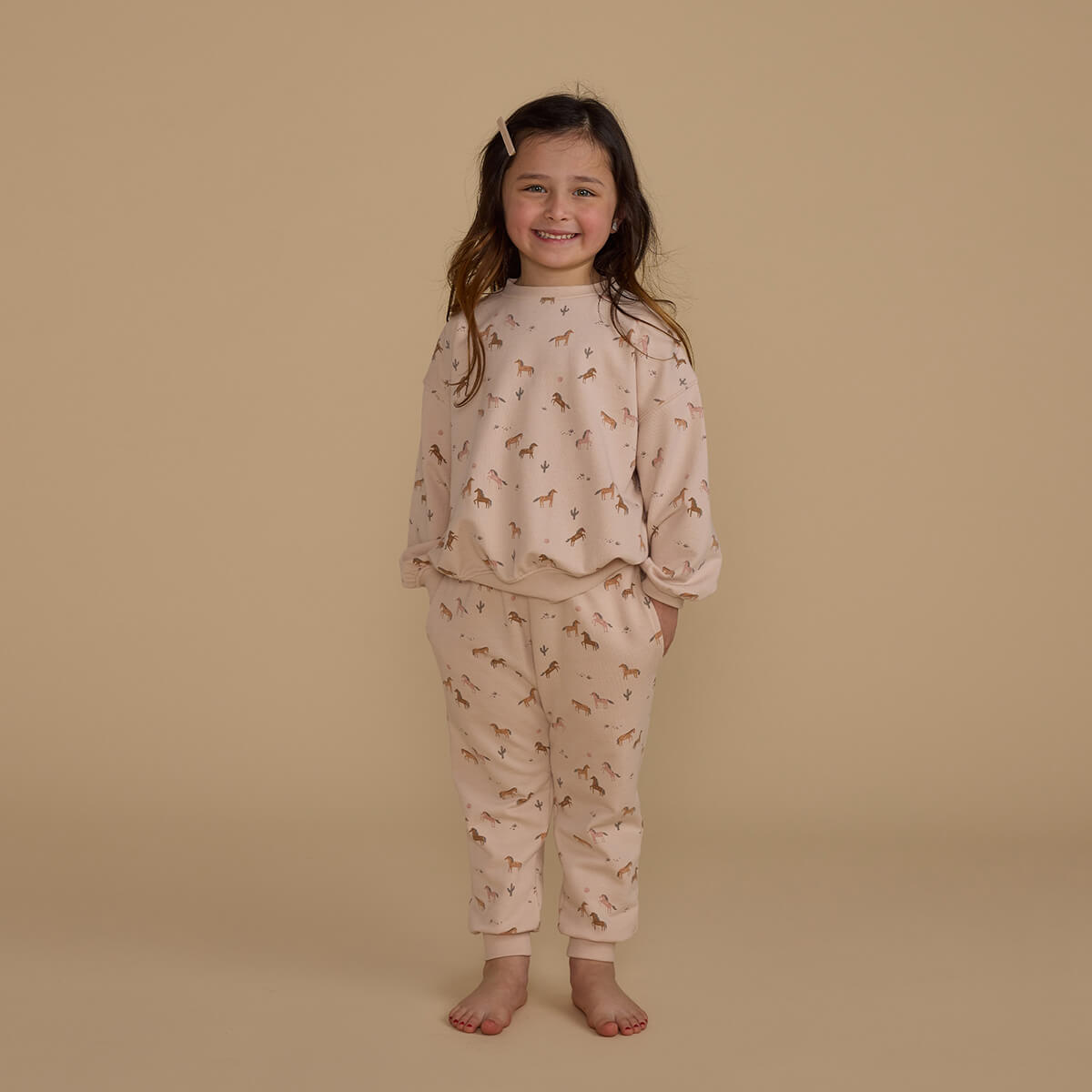 Long sleeve tee and pant set for babies by Rylee and Cru. A sweet little baby two piece outfit with a long sleeved crew neck top and dropped crotch slouch trousers.