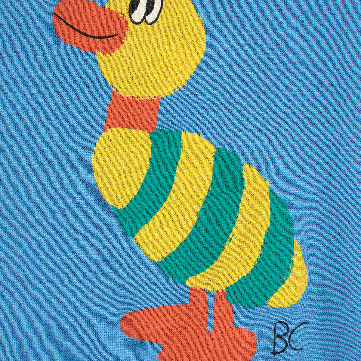 Striped Duck Baby Sweatshirt by Bobo Choses. Cosy and fun, this sweatshirt is a versatile essential for casual comfort. Featuring ribbed cuffs, dropped shoulders, a loose fit and shoulder snap fastening, this blue jumper is designed to bring comfort to everyday.