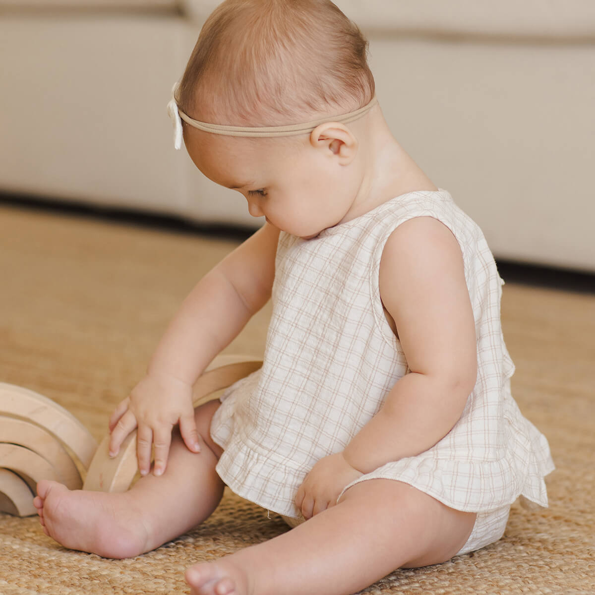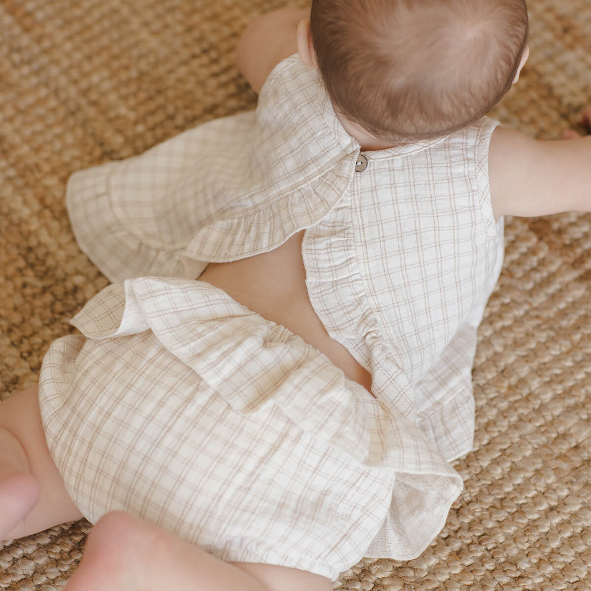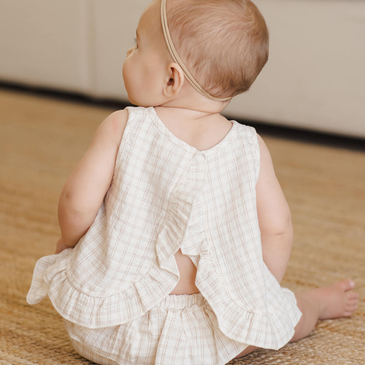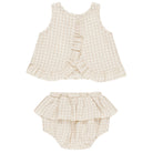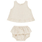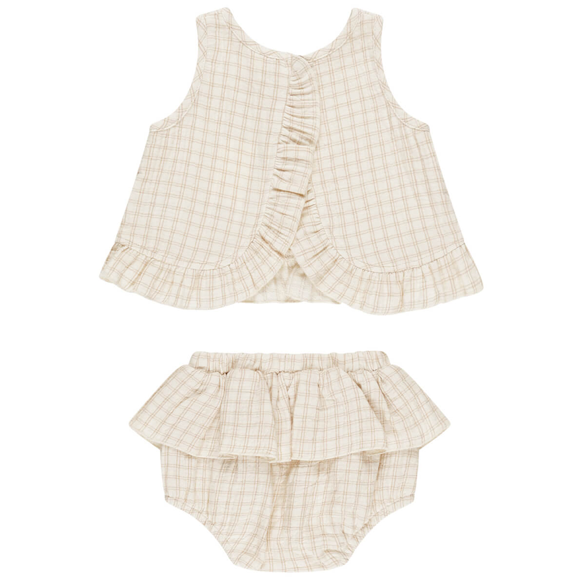 Ruffled Tulip Top + Bloomer Set in Oat Check by Quincy Mae