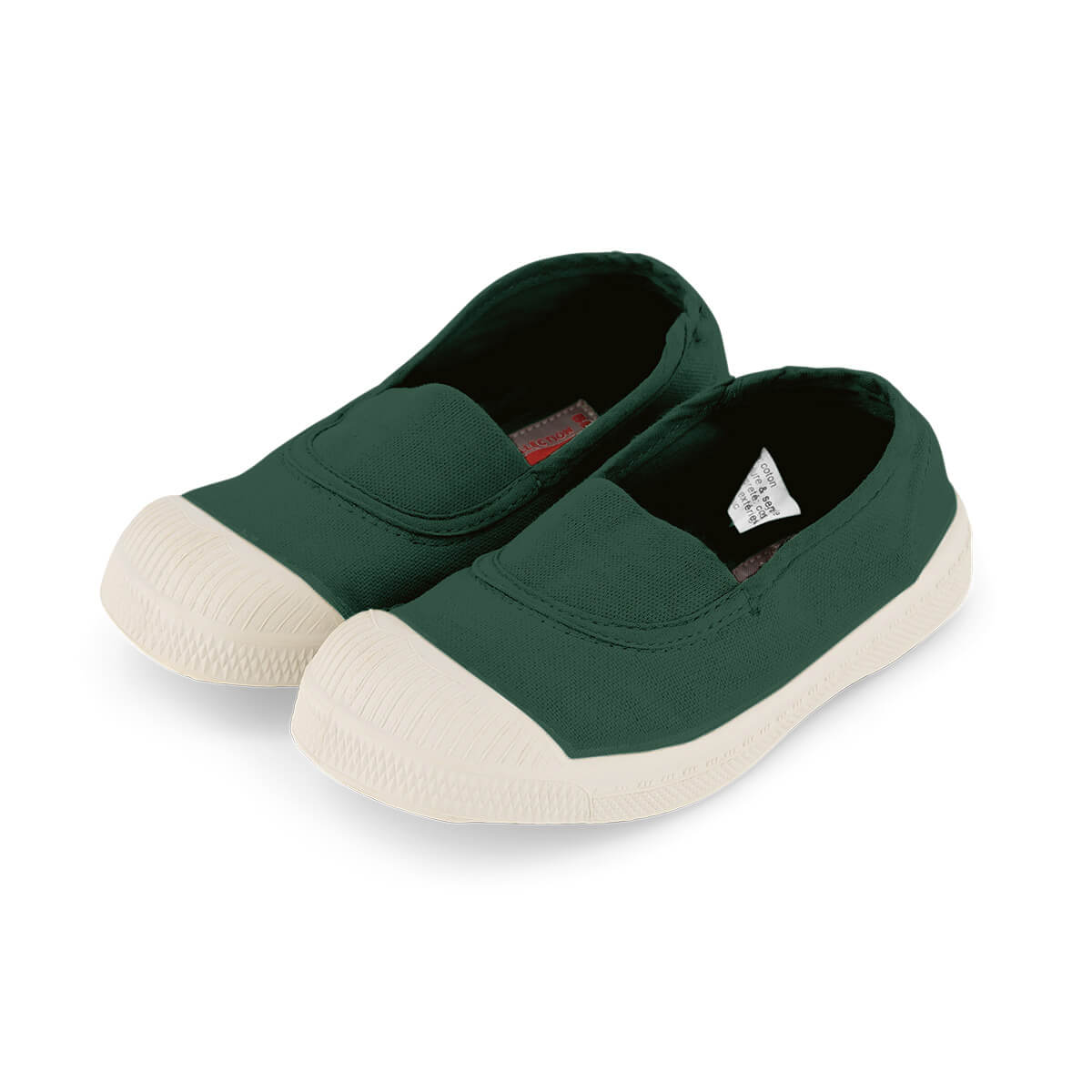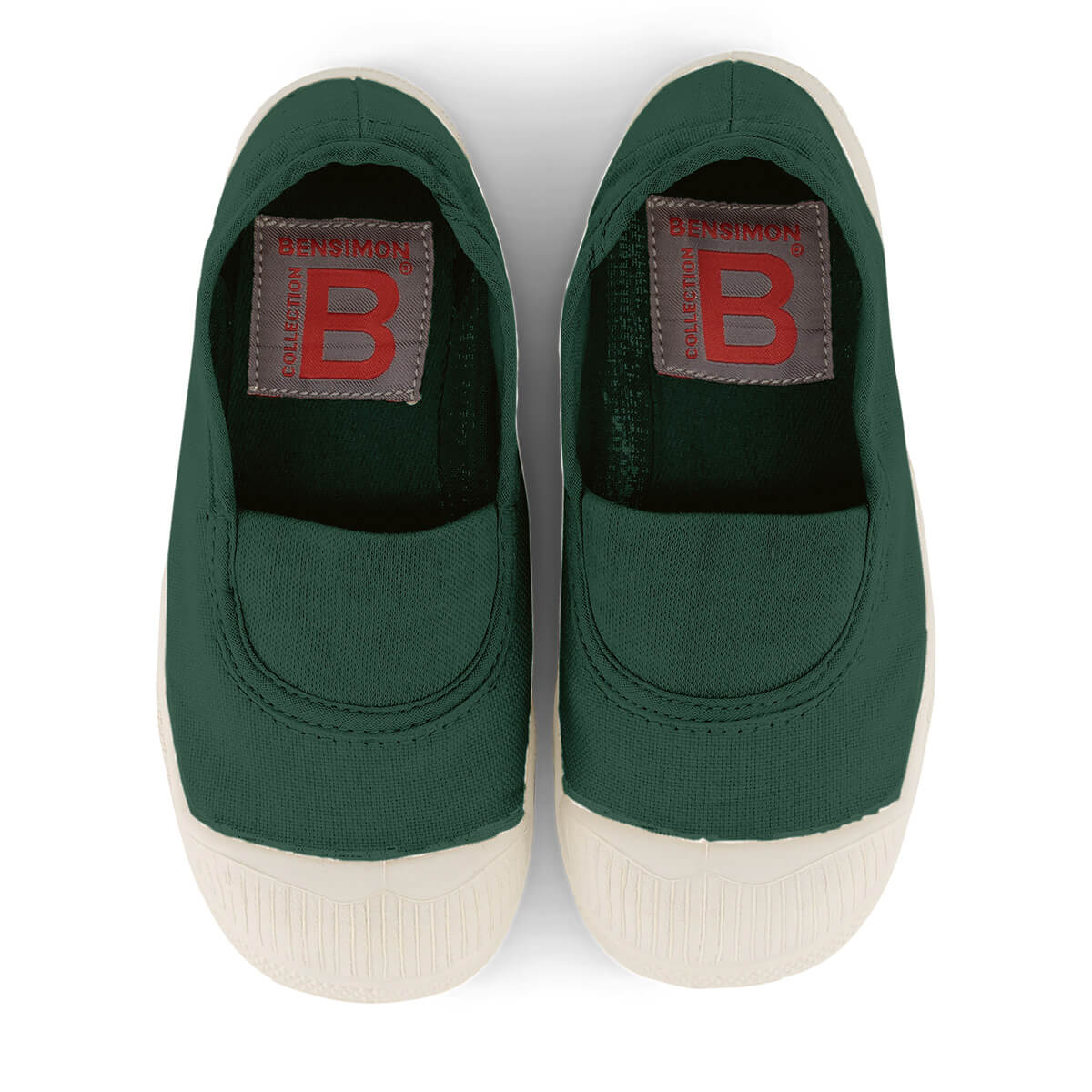 Elastic tennis shoe by Bensimon. Simple slip-on elasticated front version of the Bensimon tennis plimsolls. This slip-on style is easy to put on and quick to take off. Thin and lightweight sneakers made from rubber and natural cotton. Every shoe is hand-dyed in Bensimon's workshops in France, meaning every pair has its own variations and is completely unique.
