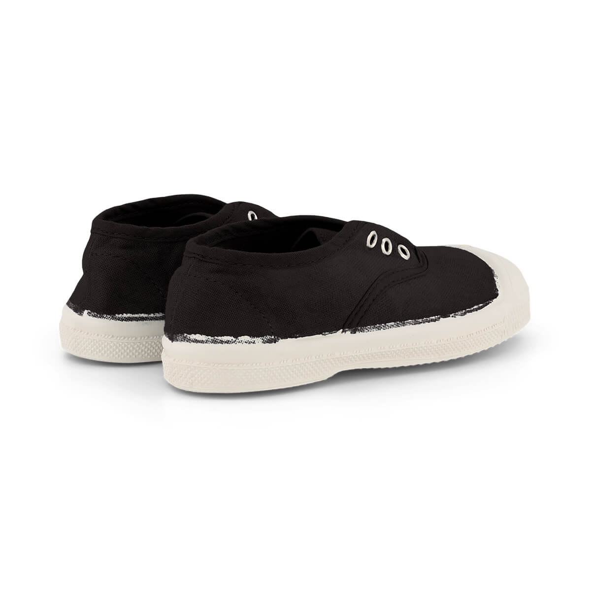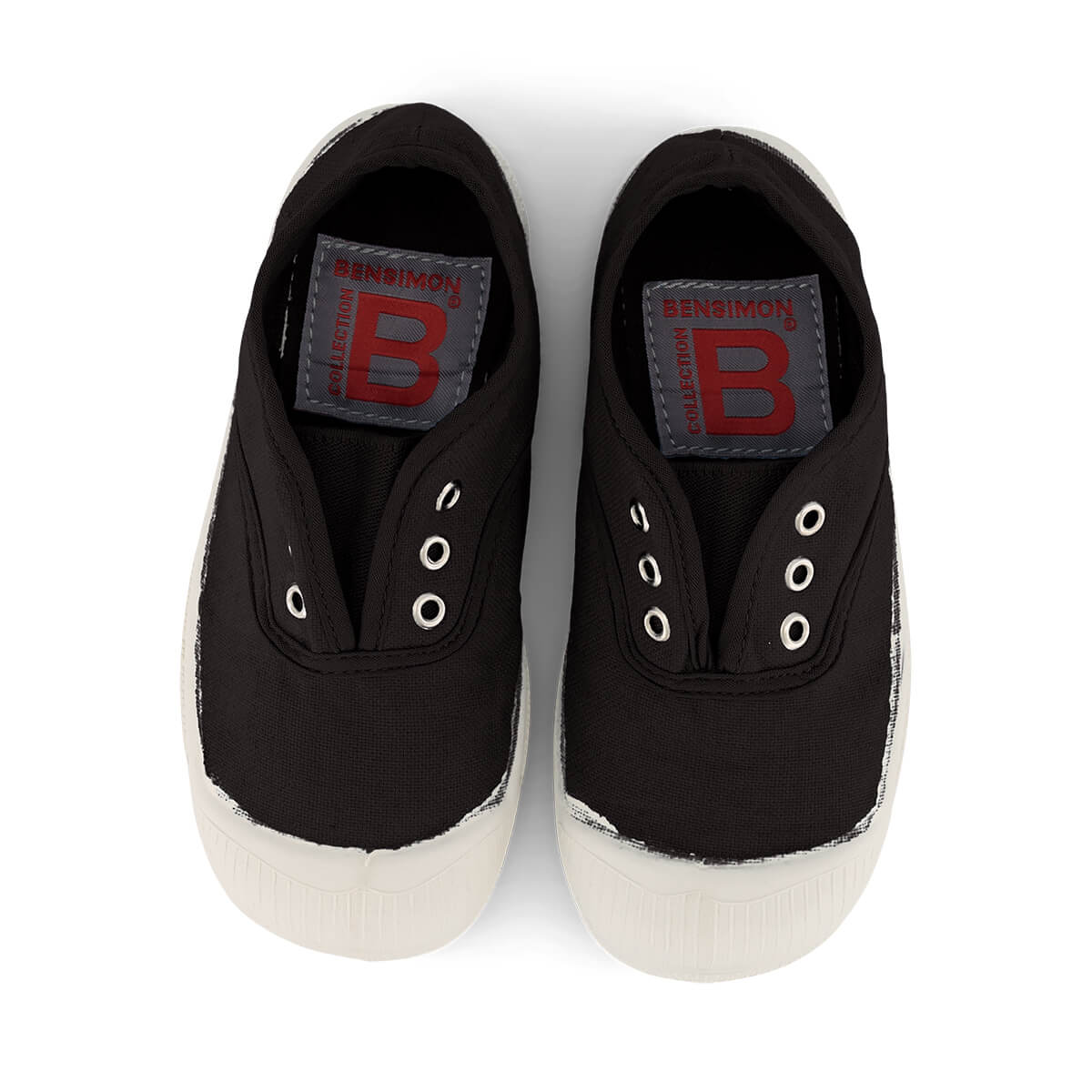 Elly slip on tennis shoe by Bensimon. The original Bensimon laceless tennis plimsolls with eyelets and elasticated front. This slip-on style is easy to put on and quick to take off. Thin and lightweight sneakers made from rubber and natural cotton. Every shoe is hand-dyed in Bensimon's workshops in France, meaning every pair has its own variations and is completely unique.