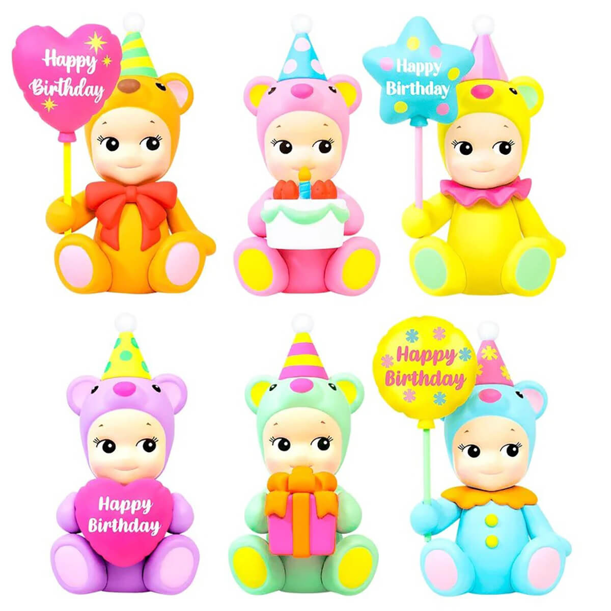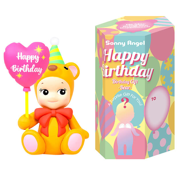 Birthday Bear collectable mini figure by Sonny Angel. All Sonny Angels are sold blind. This means you will receive one of the 6 mini figures from the Birthday Bear Series: Heart Balloon, Birthday Cake Hug, Star Balloon, Heart Hug, Present Hug or Round Balloon. There is a space on the top of each package where you can write the name of the person to whom you will give this special birthday gift. Share your love of Sonny Angel with those you love.