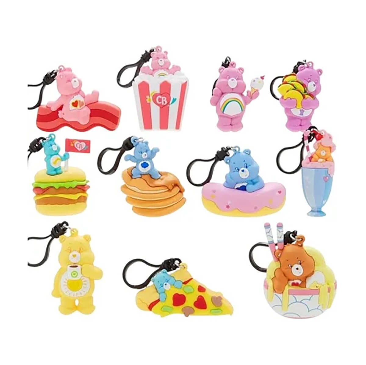 Care Bears Characters Series 2 Blind Bag Figural Bag Clip by Cloudco Entertainment. Feast your eyes on these adorable collectible Care Bears bag clips. Featuring Grumpy Bear sitting in a donut, Love-a-lot Bear riding bacon, Funshine Bear drinking coffee, Bedtime Bear snoozing on a slice of pizza and more