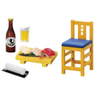 Eight sushi restaurant scenes / food sets to collect: Beer, Counter, Cutting Board and Knife, Lunch, Gas Burner, Japanese Sake, Crab Soup and Souvenir.