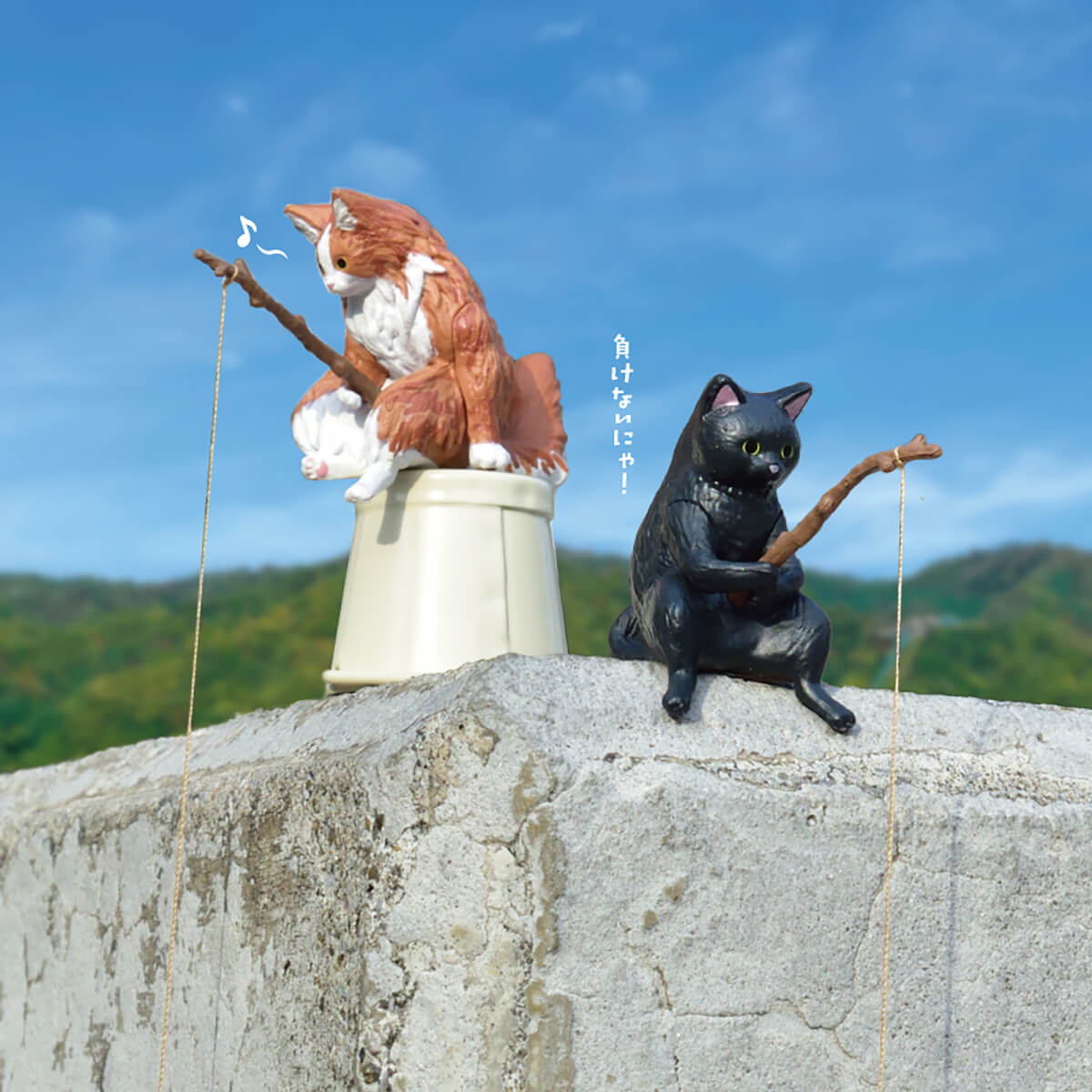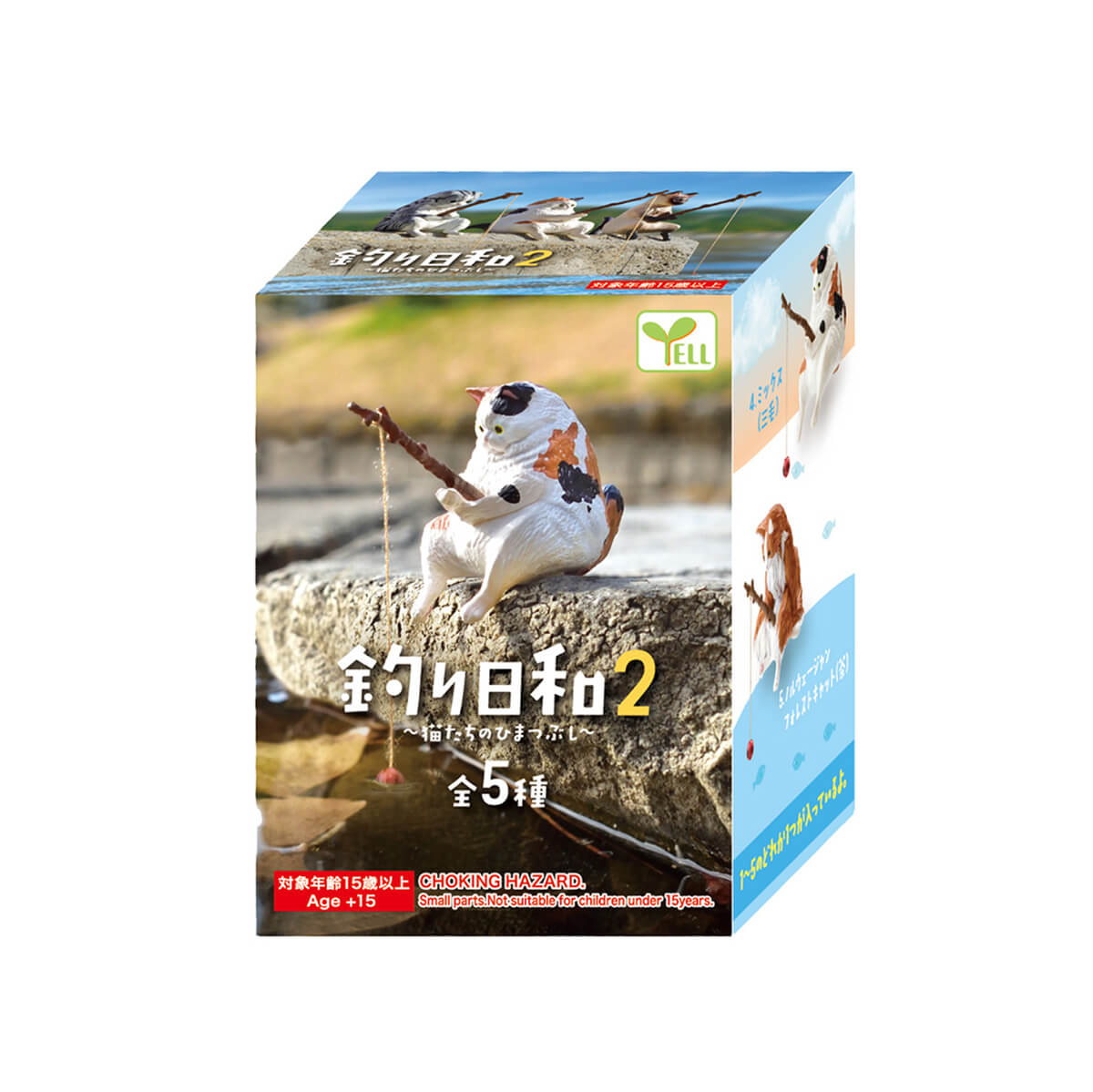 Good Weather For Fishing Cat Blind box by Yell Japan. Series 2 of the Good Weather For Fishing Cat series Tsuribiyori Neko from Yell World features even more cats cats sitting and fishing. Today is also a carefree and leisurely day. Each cat has a serious look and wonders what it will catch today? Attach the thread and bead provided to the rod to complete the fishing scene. Sit your fishing friend on your bedside table, workspace or bookshelf to add a little moment of calmness. Collect all five and they can fish together.