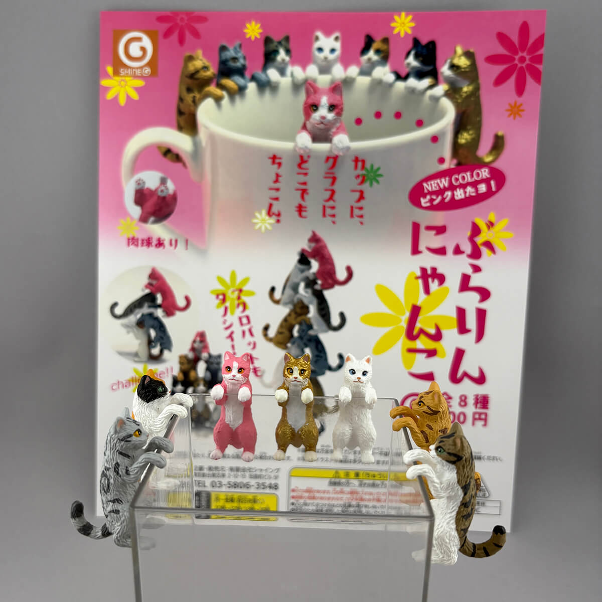 Hanging Cat Vol. 6 Gachapon Capsule Collectible by ShineG. Highly collectible and authentic Japanese gachapon capsule containing one of eight different cats with curved paws and tails to hook on your glass, cup or anywhere else you can think of! If you purchase multiple cats you can also stack them!