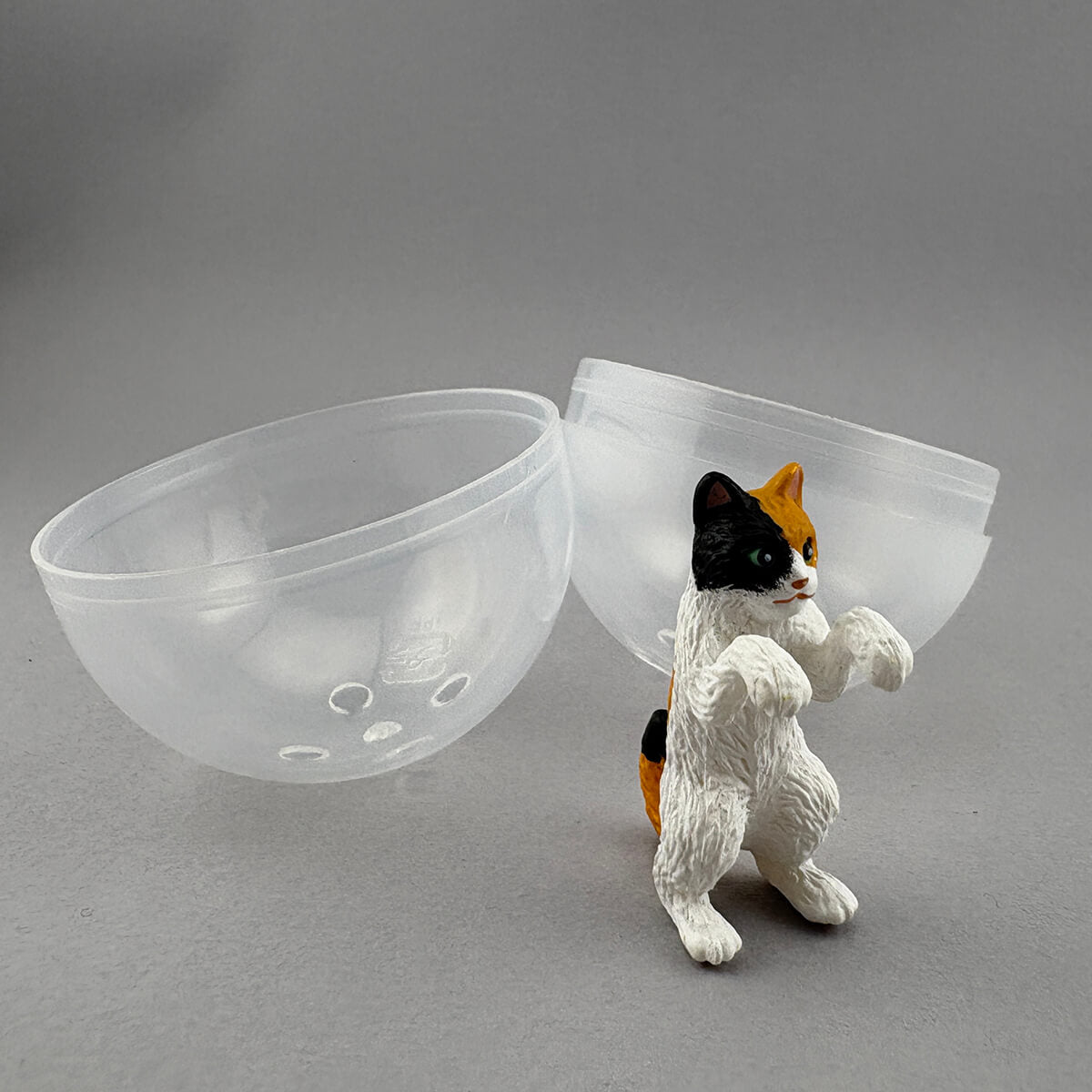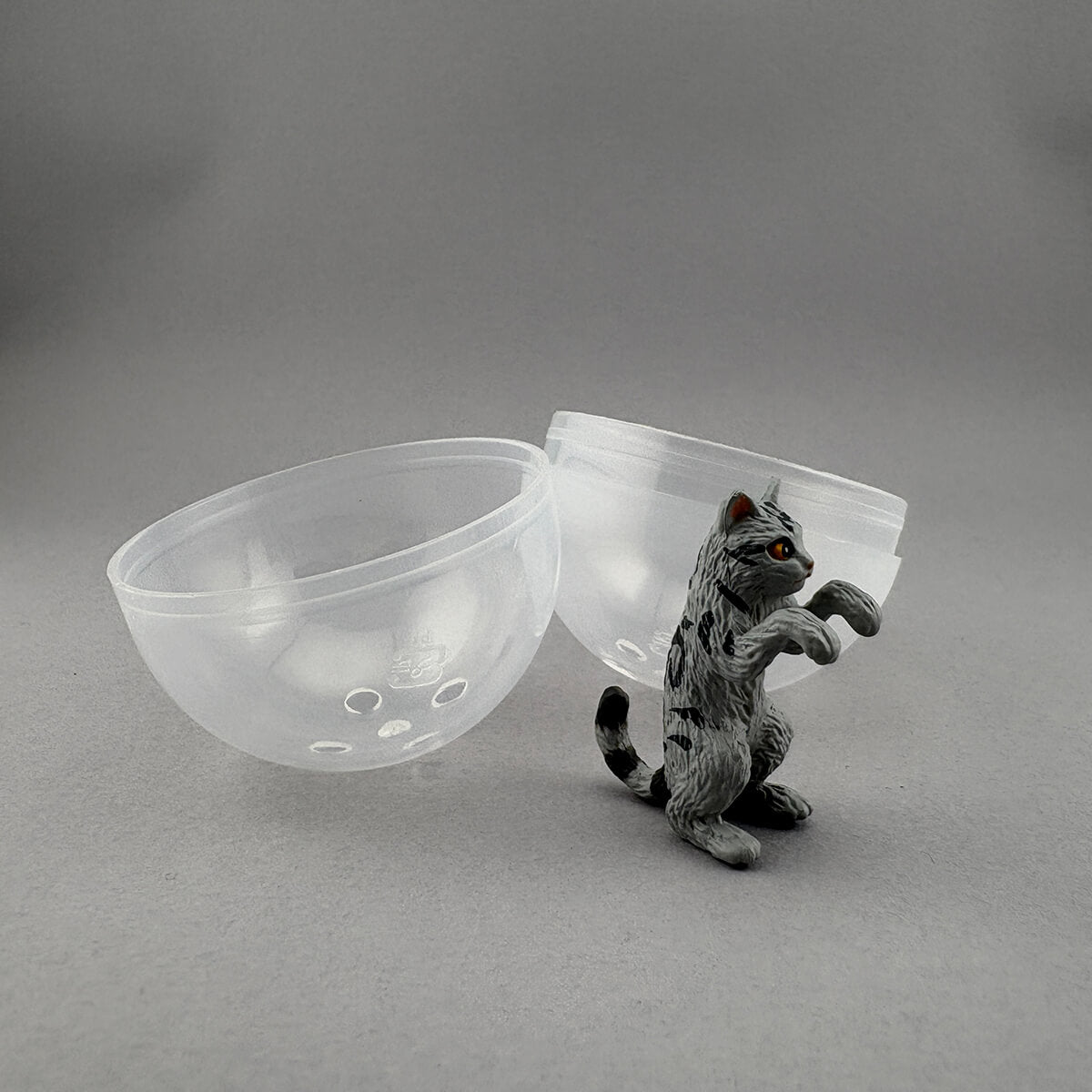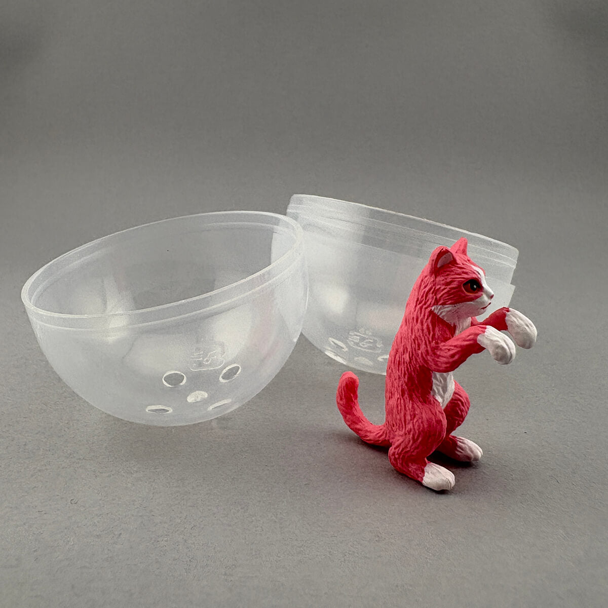 Capsule size 6cm Diameter. Cat size 3cm approx.