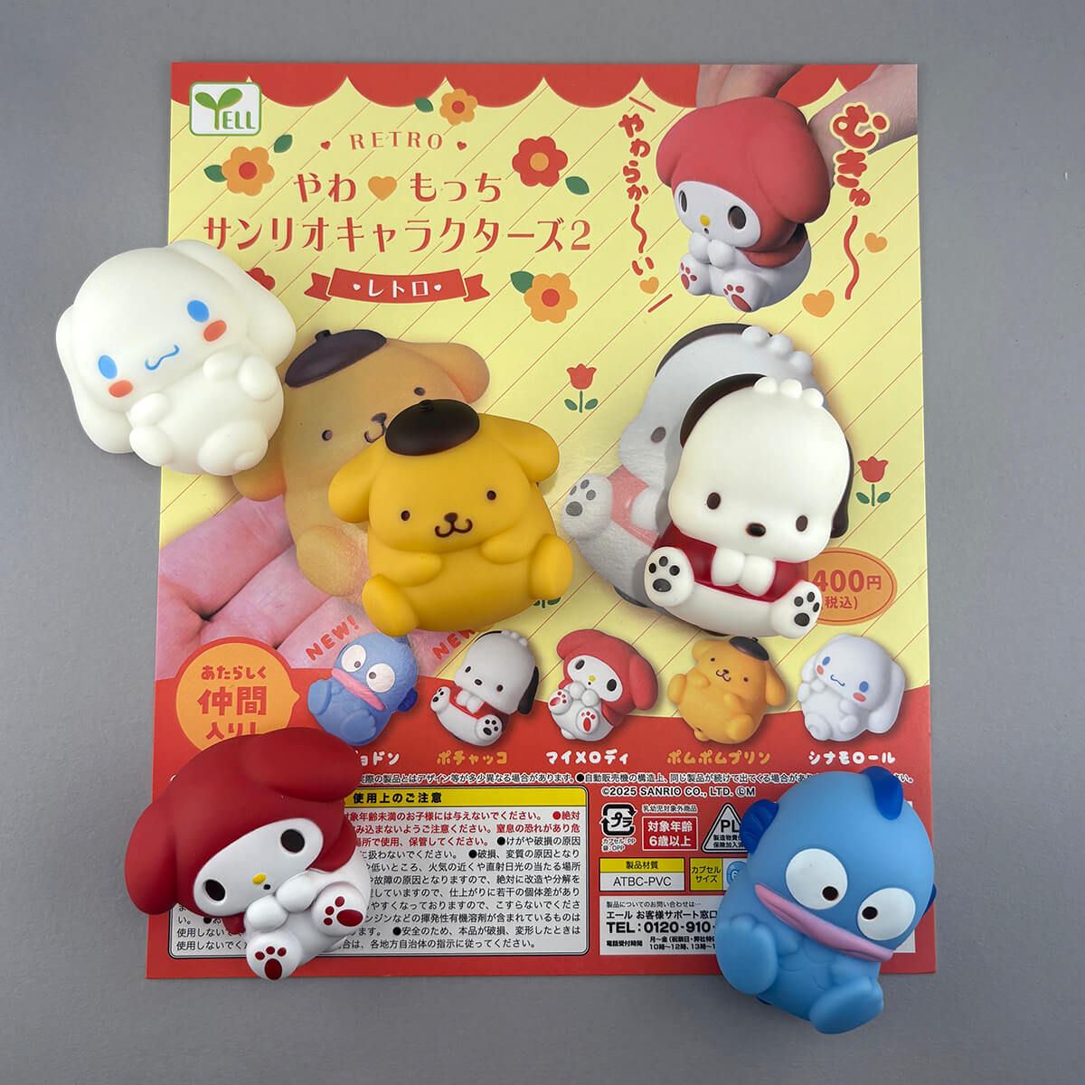 Retro Yawamochi Sanrio Characters Vol. 2 Gachapon Capsule Collectible by Yell Japan. Highly collectible and authentic Japanese gachapon capsule containing one of five plump semi-squishy mochi Sanrio characters. A fun and comforting gachapon collectible to keep on your desk or shelf.